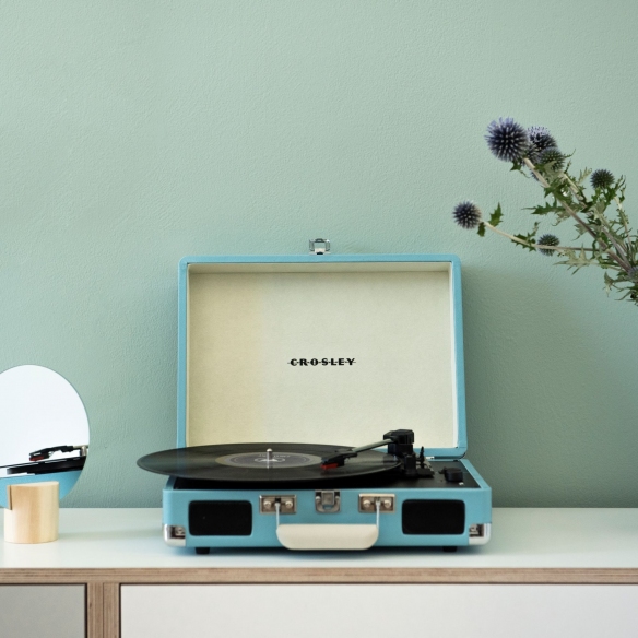 Giradischi Bluetooth Cruiser Plus disponibile in una vasta gamma di colori. Cruiser Plus è un giradischi portatile e compatto che combina la nostalgia del vinile con la comodità della connettività Bluetooth. Include un altoparlante incorporato e una copertura protettiva ed una maniglia per trasportarlo facilmente. È dotato di un braccio direzionale e di una testina di riproduzione in grado di riprodurre dischi a 33 e 45 giri. Inoltre, è possibile collegare un amplificatore esterno tramite l'uscita RCA per un suono ancora più potente. Realizzato da Crosley