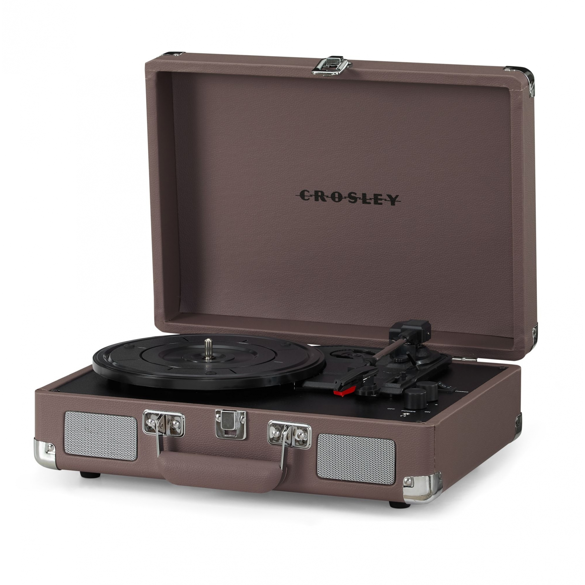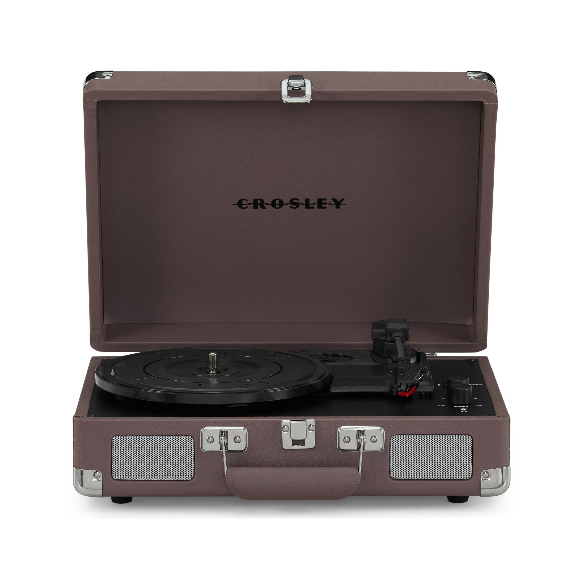 Giradischi Bluetooth Cruiser Plus disponibile in una vasta gamma di colori. Cruiser Plus è un giradischi portatile e compatto che combina la nostalgia del vinile con la comodità della connettività Bluetooth. Include un altoparlante incorporato e una copertura protettiva ed una maniglia per trasportarlo facilmente. È dotato di un braccio direzionale e di una testina di riproduzione in grado di riprodurre dischi a 33 e 45 giri. Inoltre, è possibile collegare un amplificatore esterno tramite l'uscita RCA per un suono ancora più potente. Realizzato da Crosley