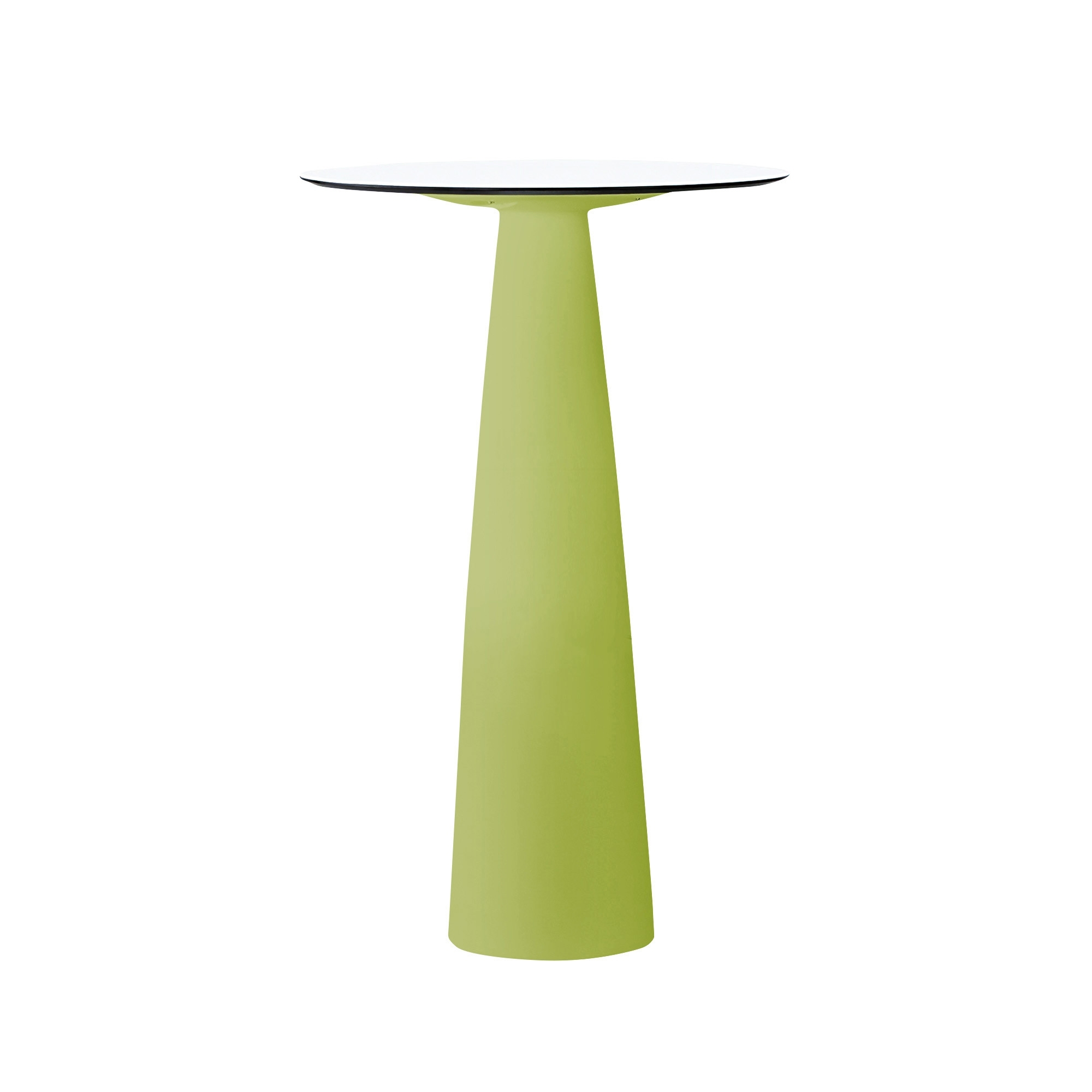Tavolo alto Hoplà con base in polietilene e piano in HPL, dall'altezza di 110 cm e dal diametro di 69 cm. Semplice ma di impatto, Hoplà combina un design moderno con un tocco minimalista, per creare un tavolo di pura perfezione geometrica. La base è conica, il piano circolare e insieme raggiungono un piacevole equilibrio che si fonde con qualsiasi contesto di arredamento. Magnifico in un locale alla moda o in un giardino raccolto e accogliente, questo tavolo è disponibile in frizzanti colori. Disegnato da Marc Sadler per Slide.