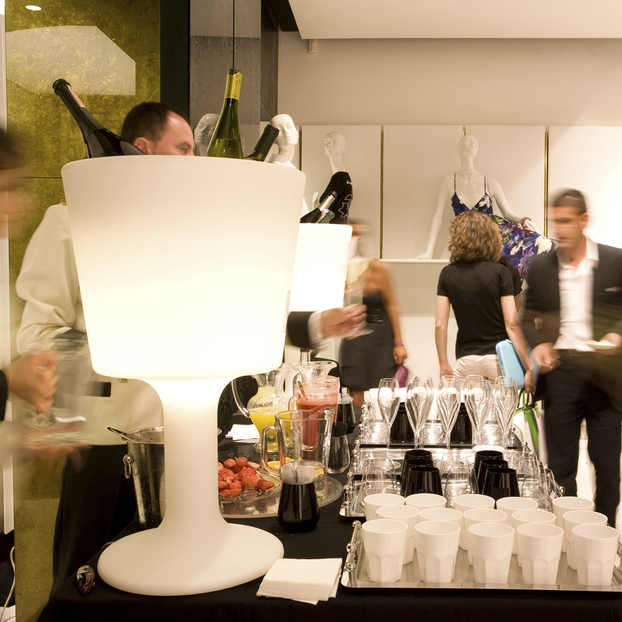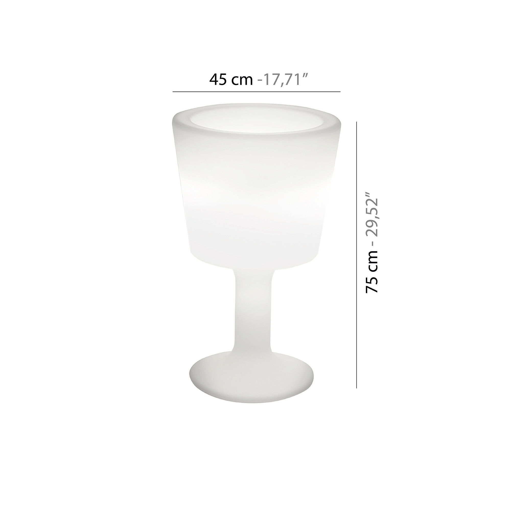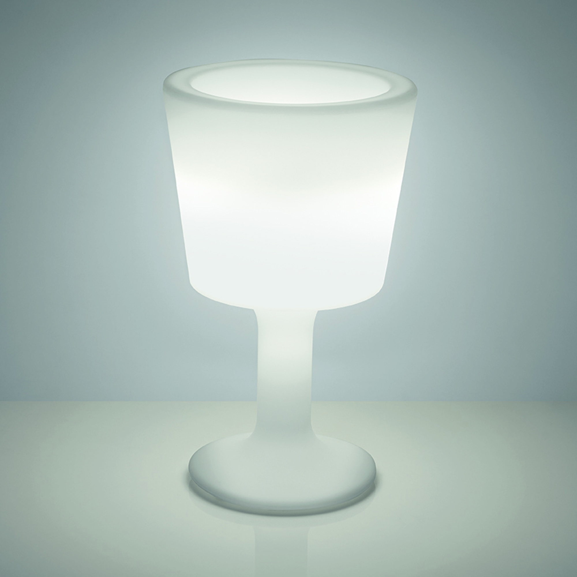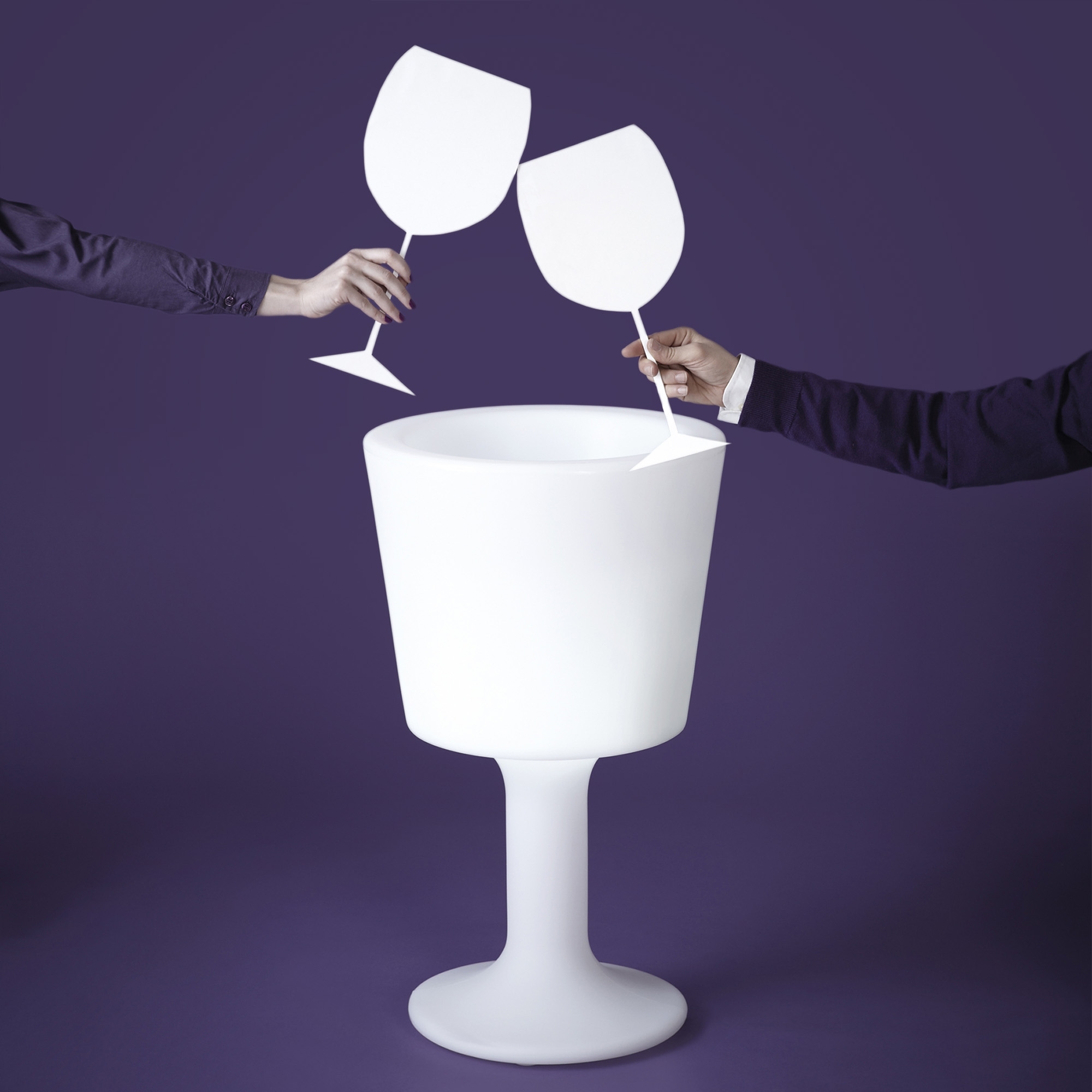 Portabottiglie luminoso Light Drink realizzato in polietilene, dal diametro di 45 cm e altezza di 75 cm. Illumina le tue serate all'aperto con questo giocoso portabottiglie, un must per la tua prossima festa. È un accessorio unico, utile e funzionale, ideale per le serate estive e spazi collettivi. Puoi anche riempirlo con dei cubetti di ghiaccio per avere bevande sempre fresche e frizzanti, il suo effetto luminoso dà la sensazione di immergersi in un cielo notturno stellato. Disegnato da Jorge Najera per Slide.