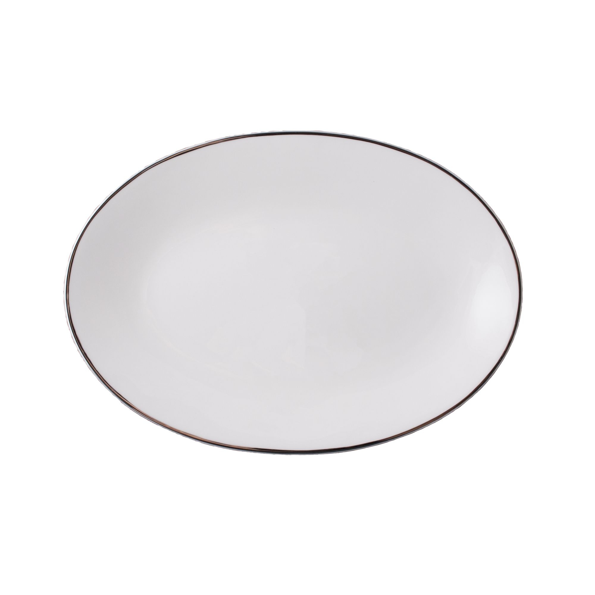 Piatto ovale in finissima porcellana bone china, appartenente alla collezione Ducale, dalla lunghezza di 26 cm. Elegante, senza tempo e realizzato con minuzia di dettagli, questo bellissimo piatto da portata è dipinto a mano con inserti in platino che ne delineano il bordo e aggiungono ulteriore raffinatezza. Perfetto per servire formaggi, frutta o altre deliziose creazioni culinarie, è il complemento perfetto per una tavola impeccabile. Progettato e realizzato da Geminiano Cozzi Venezia 1765.