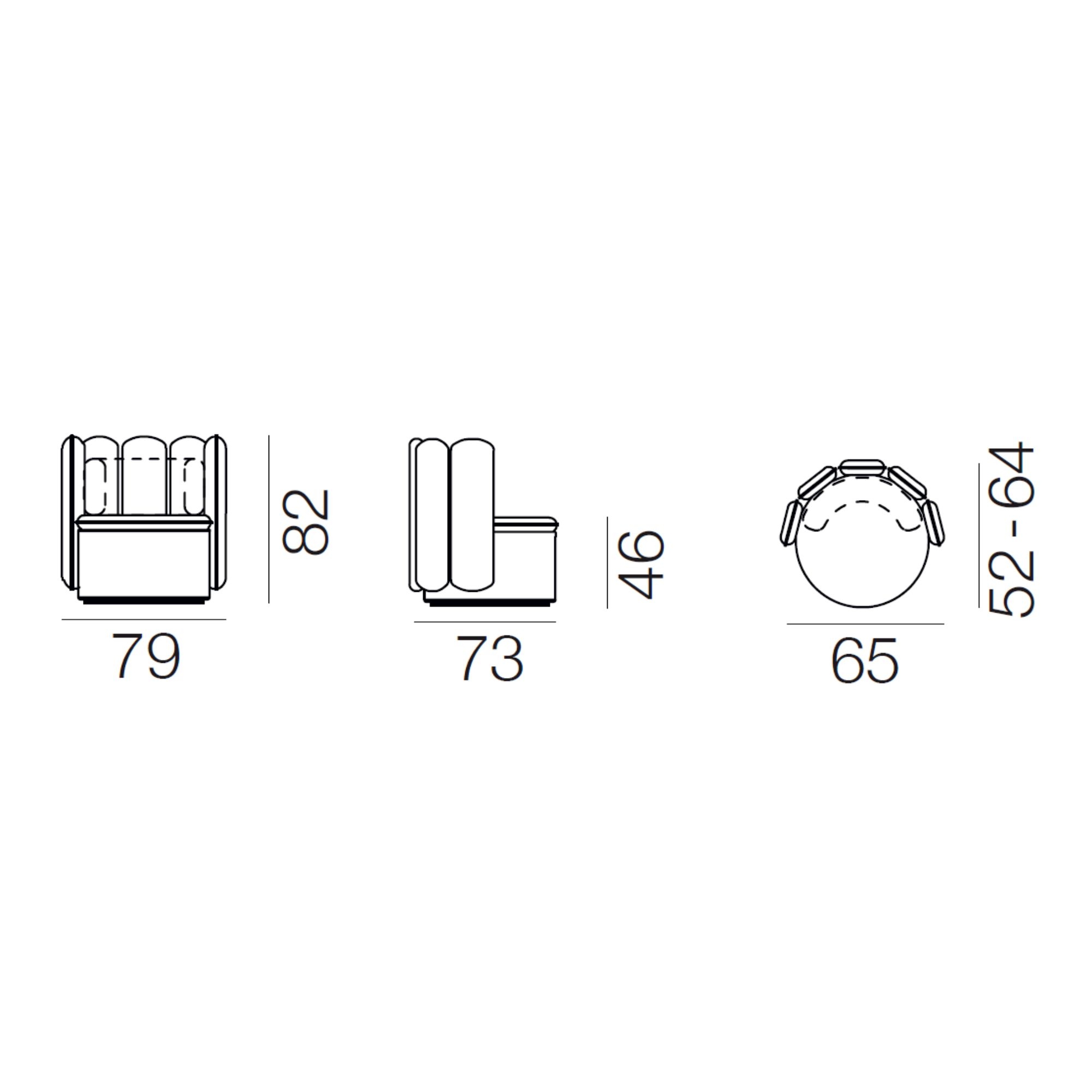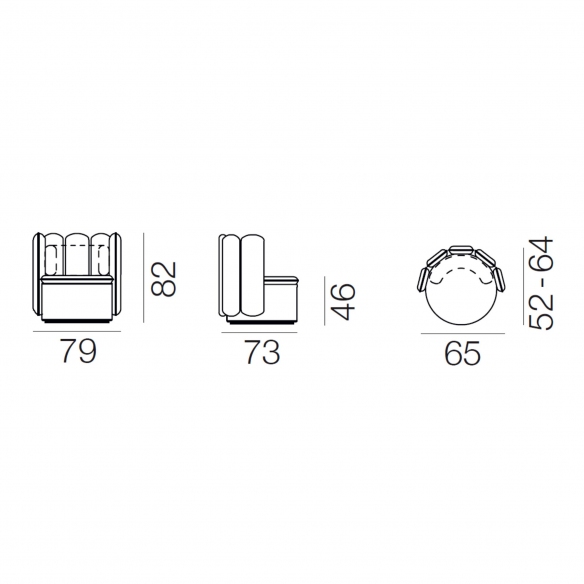 Dimensioni: Lunghezza 79 cm, Larghezza 73 cm, Altezza seduta 46 cm, Altezza totale 82 cm