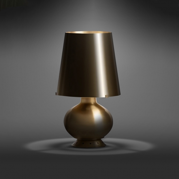 Lampada da tavolo Fontana Media con base e diffusore realizzati in vetro satinato, montatura in metallo verniciato, spina europea a due poli e sistema di tripla accensione per illuminare la base, la parte superiore e inferiore del diffusore. La lampada è a luce indiretta e diffusa, ma non dimmerabile. Si consiglia 1x100W E27 (non inclusa). Disegnata da Max Ingrand per FontanaArte.