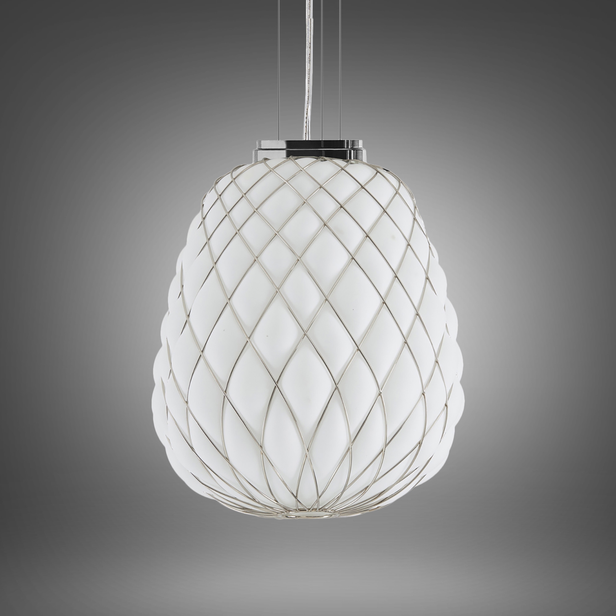 Ami un'illuminazione lussuosa e unica? Immagina la tua casa con la luce di Pinecone: una lampada perfetta per ogni tuo spazio! Il massimo comfort e la funzionalità si concretizza in questa preziosa lampada, un'opera d'arte con cui decorare la propria casa e accentuare l'aspetto dell'arredamento. La luce risplende attraverso la struttura a rete, creando un'atmosfera rilassante e distensiva in cui abbandonare i pensieri e godersi gli spazi. Beh, ti starai chiedendo cosa c'è dietro questo piccolo gioiello, vero Semplicemente l'abilità e la padronanza di tecniche secolari di soffiatura del vetro, giocando su una tensione dicotomica tra desiderio di evasione e costrizione come il vetro intrappolato in una reticolato metallico. Vieni a scoprire la lampada Pinecone in tutte le sue versioni qui, su Newpop.it!