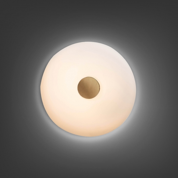 Lampada da parete Tropico grande dimmerabile realizzata in vetro soffiato opalino acidato e bottone centrale in metallo galvanizzato. Moderna e suggestiva, la lampada da parete Tropico illumina dolcemente gli ambienti con una piacevole luce diffusa. LED 42.5W - 3000K - CRI>80 - 4600lm. Disegnata da Gabriele e Oscar Buratti per Fontana Arte.