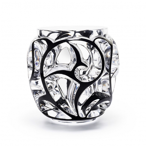 Lalique Vaso XXL in cristallo Tourbillons Incolore smalto Noir