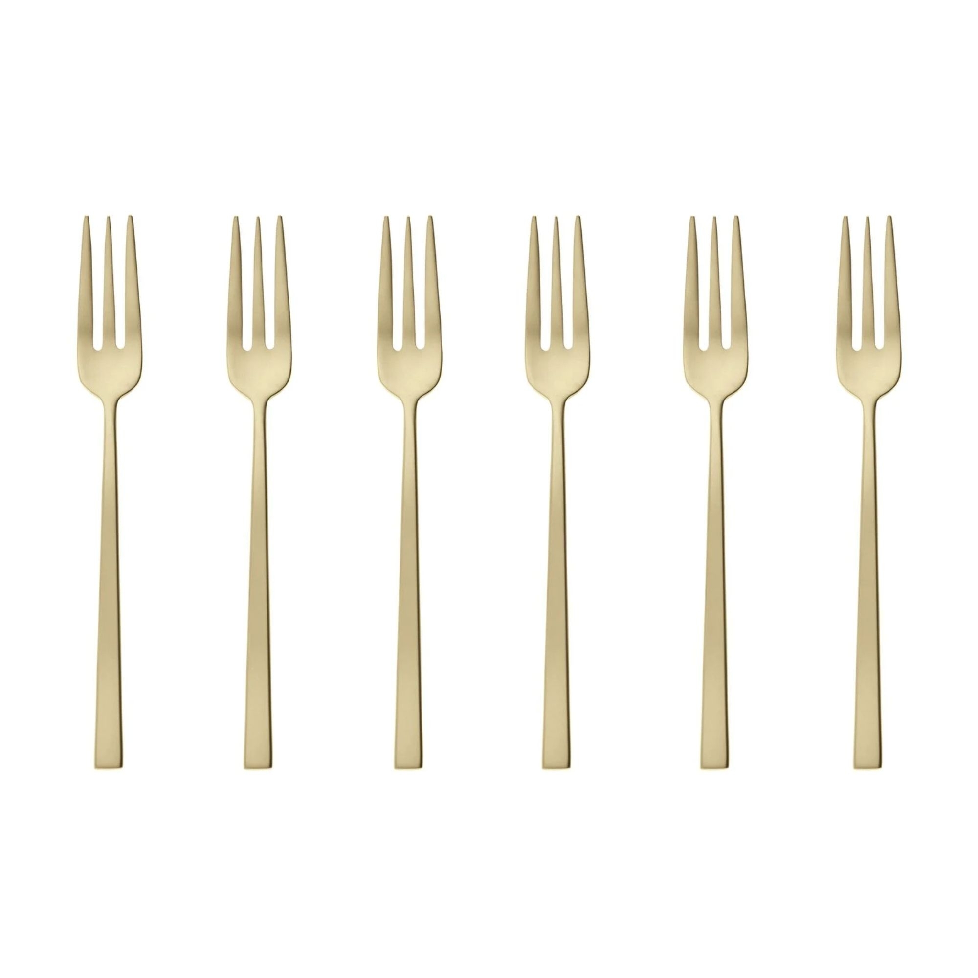 6 forchette per dolce, appartenenti alla collezione Rock, realizzate in acciaio inossidabile 18/10 con lucidatura a specchio. Caratterizzate da una spettacolare brillantezza, le forchette per dolce Rock dispongono di un manico ergonomico e maneggevole, completato dai tre denti, di cui uno leggermente smussato. Perfette per cene o pranzi formali, le forchette per dolce Rock ti aiuteranno a completare una mise en place mozzafiato! Disponibili in 6 diverse colorazioni, si abbinano perfettamente a qualsiasi stile della tua tavola. Inoltre, sono lavabili in lavastoviglie, quindi ideali per l'uso quotidiano. Progettate e realizzate da Sambonet.