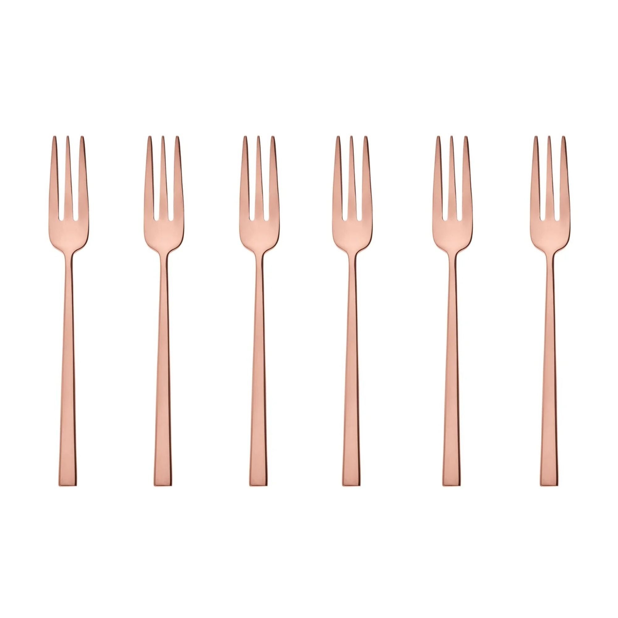 6 forchette per dolce, appartenenti alla collezione Rock, realizzate in acciaio inossidabile 18/10 con lucidatura a specchio. Caratterizzate da una spettacolare brillantezza, le forchette per dolce Rock dispongono di un manico ergonomico e maneggevole, completato dai tre denti, di cui uno leggermente smussato. Perfette per cene o pranzi formali, le forchette per dolce Rock ti aiuteranno a completare una mise en place mozzafiato! Disponibili in 6 diverse colorazioni, si abbinano perfettamente a qualsiasi stile della tua tavola. Inoltre, sono lavabili in lavastoviglie, quindi ideali per l'uso quotidiano. Progettate e realizzate da Sambonet.