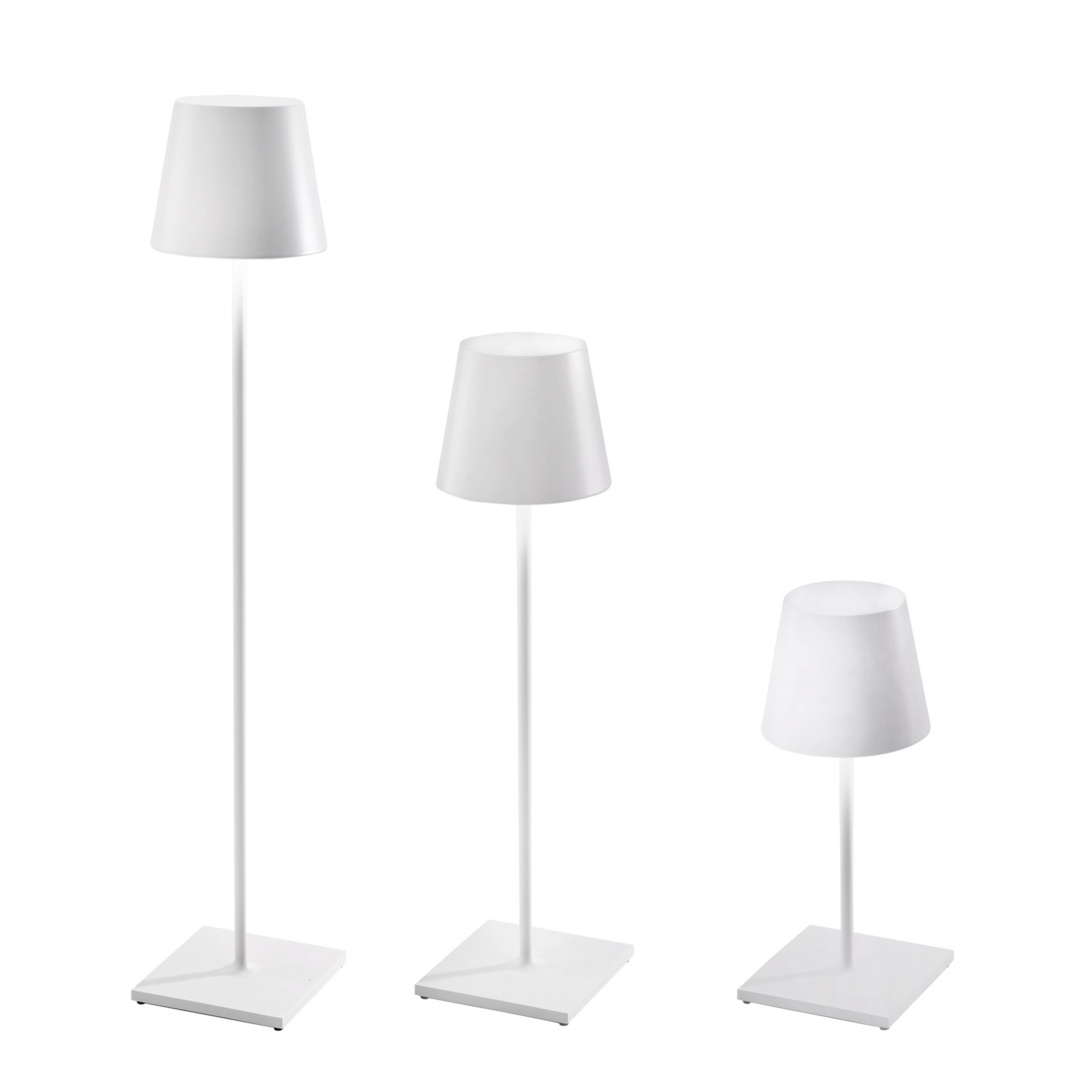 Lampada ricaricabile da terra e tavolo con corpo in alluminio verniciato e diffusore in policarbonato. Disegnata da Federico De Majo per Zafferano.