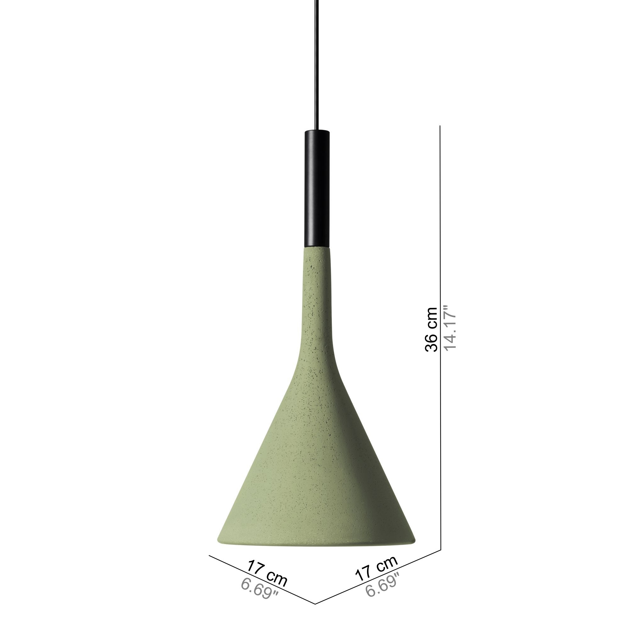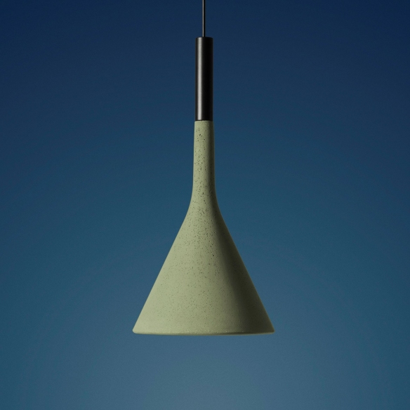 Lampada a sospensione outdoor Aplomb realizzata in cemento e alluminio. Proposta nella splendida colorazione verde, la lampada a sospensione outdoor Aplomb la perfetta compagna di avventure che arricchisce elegantemente il tuo ambiente esterno. Con disinvoltura (con aplomb), se ne infischia dei capricci del vento. Eleganza, levità, pulizia formale, con un cemento simile nell'aspetto all'amalgama originale delle lampade Aplomb per interni, ma variato nella composizione per resistere alle intemperie. Il lungo cavo permettere di posizionare Aplomb outdoor attorno a un pilone o al ramo di un albero. Crea un'illuminazione diretta e puntuale. Disegnata da Luca Pevere e Paolo Lucidi per Foscarini.