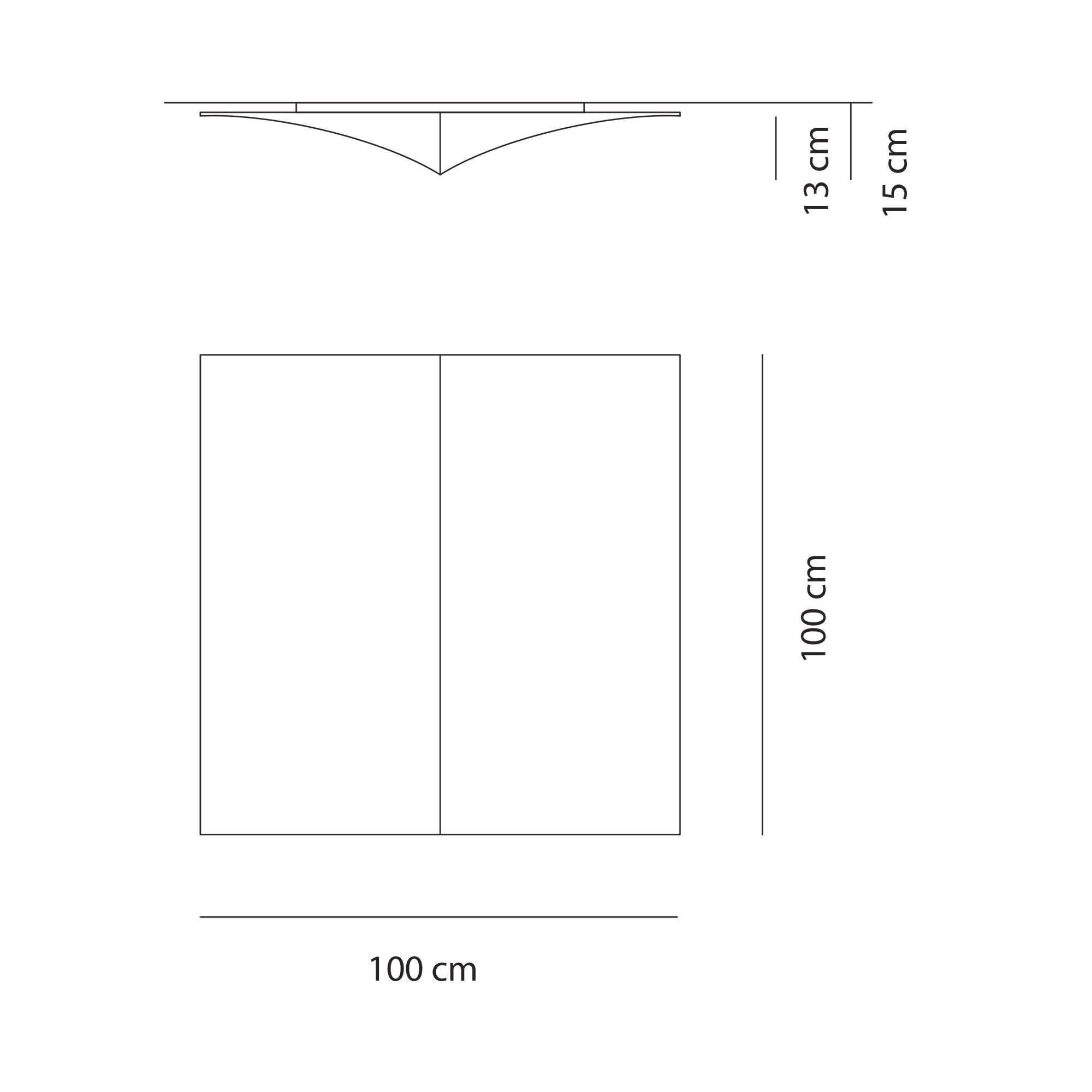 Dimensioni: Lunghezza 100 cm, Larghezza 100 cm, Altezza 15 cm
