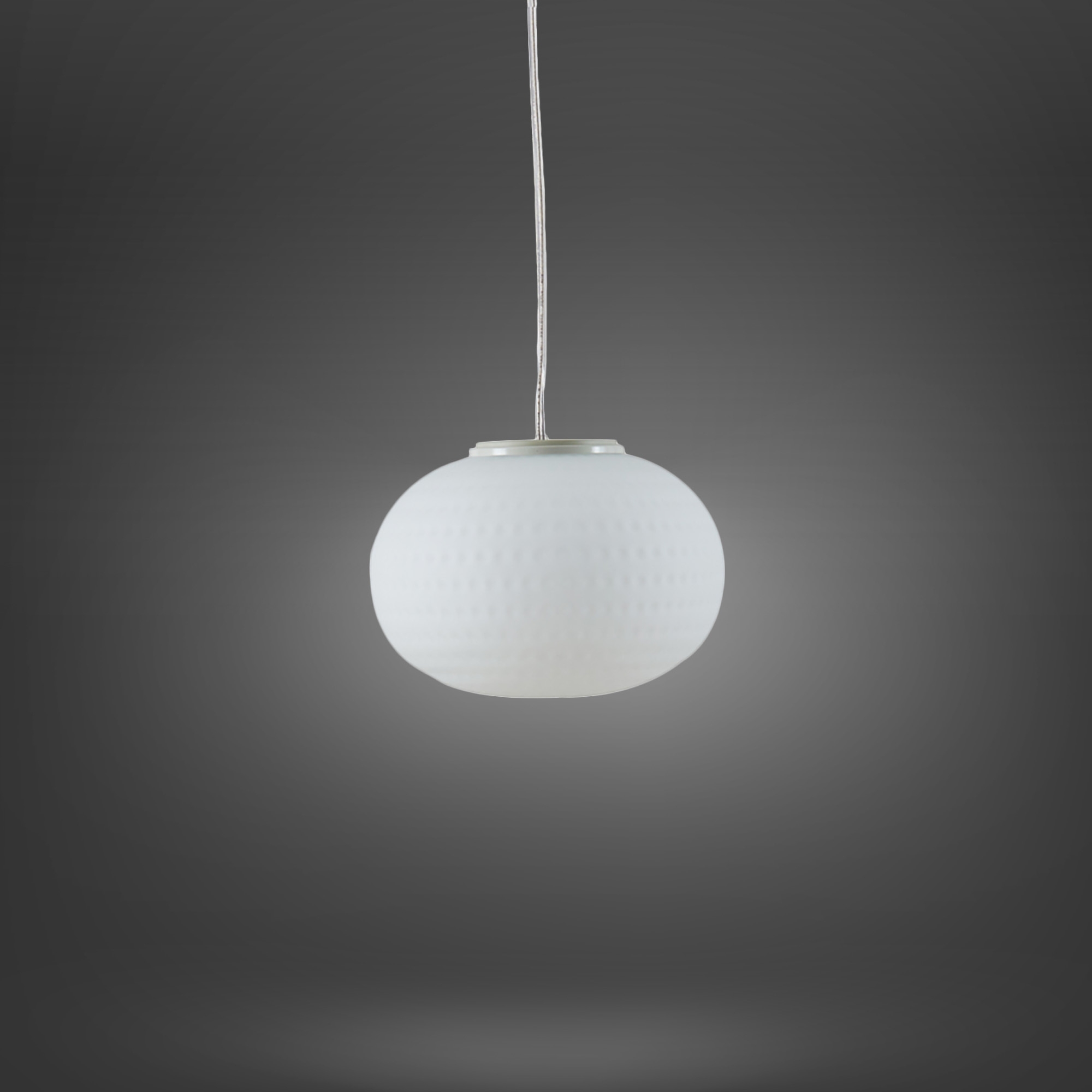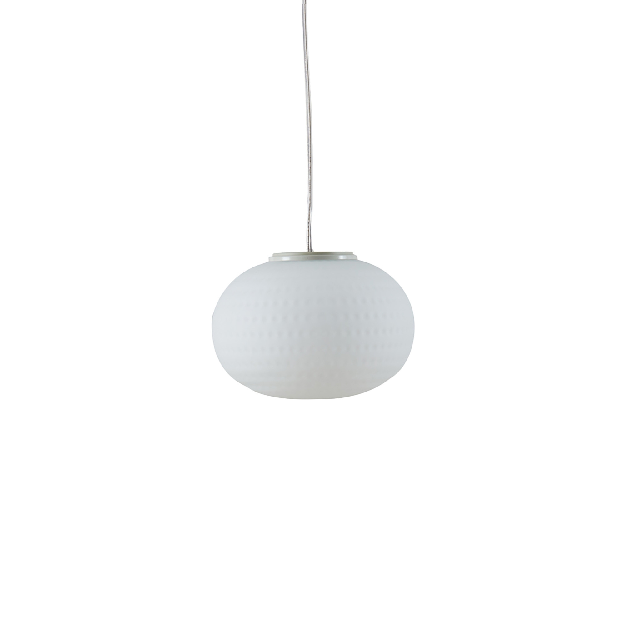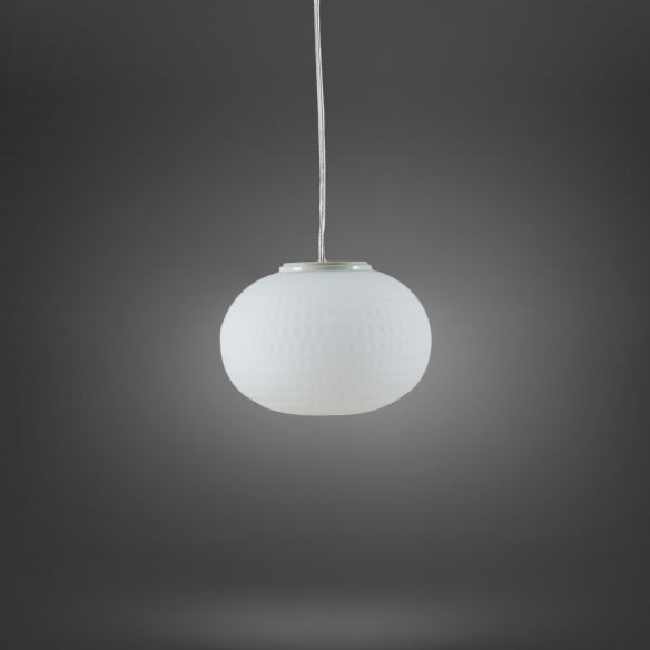 Lampada a sospensione Bianca piccola con diffusore realizzato in vetro incamiciato bianco latte, soffiato a fermo e satinato, rosone in policarbonato verniciato e cavo di alimentazione trasparente. Candida come la neve, la lampada a sospensione Bianca illumina gli ambienti con un'incantevole luce diffusa. Perfetta per la zona living, la lampada è dimmerabile. Sorgente luminosa LED 4.5W - 2700K - CRI>80 - 350lm. Disegnata da Matti Klenell per Fontana Arte.