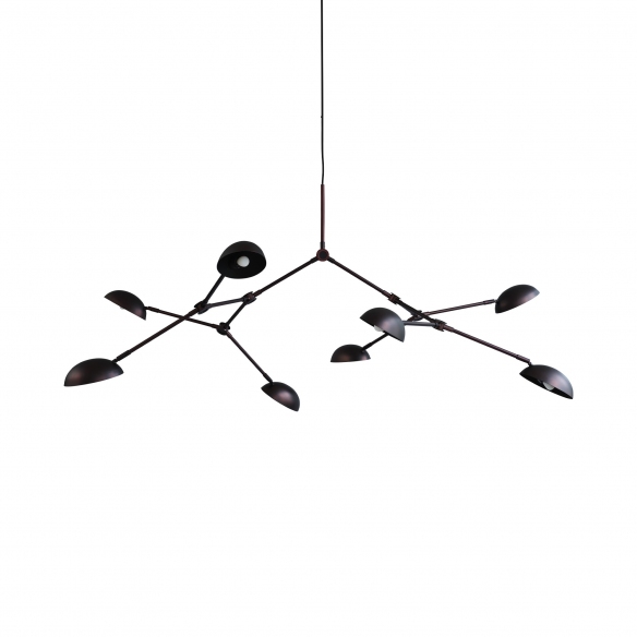 Lampadario Drop in metallo ossidato, placcato e successivamente spazzolato a mano, rosone e diffusori in ferro con finitura in ottone placcato e bracci regolabili. Disponibile in Brass, Bronze, Oxidized e Burned Black, il lampadario Drop è composto da diversi diffusori a forma di goccia che emettono una luce diretta e possono essere orientati a piacimento per illuminare una zona pranzo o living e aggiungere un tocco in più all'arredamento. Sorgente luminosa 48W - E14 - IP20, non dimmerabile. Disegnato da Kristian Sofus Hansen & Tommy Hyldahl per 101 Copenhagen.