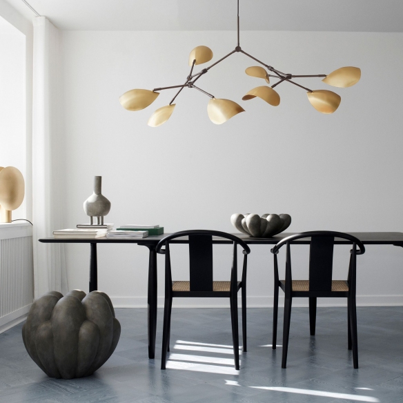 Il lampadario Stringray è un lampadario che ricorda le lampade moderniste degli anni Cinquanta e sembra evocare i movimenti delicati delle razze marine da cui trae ispirazione. È costituito da una struttura in metallo con 14 bracci orientabili che permettono di indirizzare la luce a piacere. Ogni punto luce ha un paralume orientabile, in metallo verniciato e spazzolato. Cambiando la direzione dei punti luce si può creare un'illuminazione da adattare in cucina, in ufficio o in salotto. Disegnato da Tommy Hyldahl, Kristian Sofus Hansen per 101 Copenhagen.