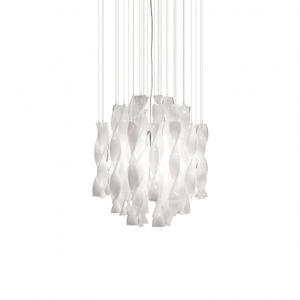La collezione Aura di Axolight, comprensiva di lampade a sospensione e lampade a soffitto, è un viaggio incantevole nella maestria del vetro soffiato. Ogni pezzo è unico, grazie all'inimitabile abilità di un maestro vetraio che dà vita a piccoli bicchieri di vetro, che insieme creano un'immagine fluida e acquatica. Il bagliore diffuso proveniente da ogni singola unità di vetro si combina per creare un'illuminazione che è sia un'immediata dichiarazione di stile che una fonte di luce accogliente e confortevole. Ogni lampada della collezione Aura è un invito a tuffarsi in un mare di luci e riflessi. Le lampade a sospensione, con la loro presenza fluttuante, invadono l'ambiente con onde di luce che creano riflessioni dinamiche. Le lampade da soffitto, invece, emanano un bagliore caldo e diffuso da un punto di vista elevato, creando un'atmosfera che avvolge interamente la scena sotto di esse. La collezione Aura rappresenta perfettamente la filosofia di design di Axolight, unendo l'eccellenza artigianale con le esigenze funzionali dei moderni spazi di vita e di lavoro. Le lampade Aura non sono solo fonti d'illuminazione, ma veri e propri elementi d'arredo in grado di trasformare ogni ambiente con la loro presenza brillante e affascinante.