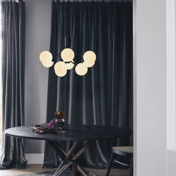 Lampada a sospensione Apiales 9 in metallo, rappresenta 9 sorgenti di luce in vetro soffiato a mano realizzati da abili artigiani. La lampada Apiales 9 è disponibile in 4 diverse versioni (dal tradizionale ottone al moderno nichel) adattabili a qualsiasi tipo di ambiente, dal più vintage al più contemporaneo. L'uso della tecnologia LED garantisce una durata massima e un'efficace illuminazione, e contribuisce anche a creare un atmosfera calda e raffinata. I bracci della lampada si aprono come steli di fiori da cui la luce si diffonde con eleganza. Disegnata da Sofie Refer per Nuura.