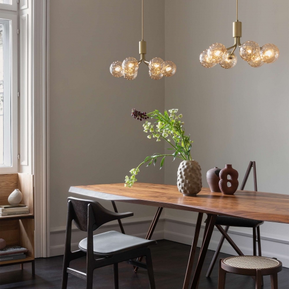 Lampada a sospensione Apiales 6 realizzata in metallo è una fusione tra artigianato tradizionale e stile contemporaneo. La lampada Apiales 6 è disponibile in quattro diverse versioni, dal sofisticato color ottone al moderno nichel. In questo modo può essere installato in qualsiasi spazio della casa, trasformandolo in una vera e propria oasi di bellezza naturale. La lampada presenta 6 ampolle in vetro soffiato a mano che emanano una luce calda e accogliente e richiamano la delicata bellezza dei petali in fiore. La tecnologia LED assicura un'illuminazione efficace e prolungata. Disegnata da Sofie Refer per Nuura.