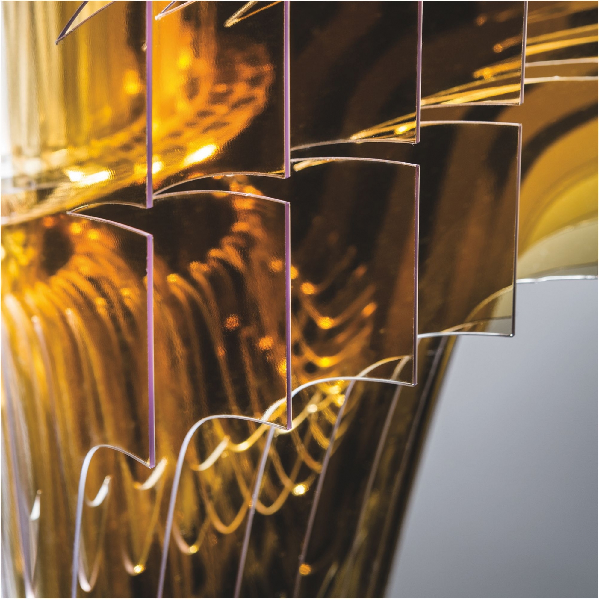 La lampada a sospensione Aria large è un'opera maestosa ed elegante nel mondo dell'illuminazione, realizzata in Cristalflex® e Lentiflex®, materiali brevettati Slamp che si distinguono per la loro brillantezza e leggerezza. La struttura della lampada è complessa e affascinante: composta da 50 differenti lance che avvolgono la sorgente luminosa LED, Aria large si abbina armoniosamente a ogni stile e ambientazione, dall'ingresso classico ed elegante alla sala da pranzo contemporanea, dall'ufficio professionale al negozio espositivo. La sua presenza è in grado di trasformare uno spazio ordinario e semplice in un ambiente pieno di luce e design. Disponibile in tre diverse finiture, è perfetta per illuminare con grande stile tutti gli angoli della vostra casa. Il design visionario, fluido e dinamico di Aria esprime la maestosità delle opere architettoniche in una lampada di utilizzo quotidiano. Disegnata da Zaha Hadid per Slamp.