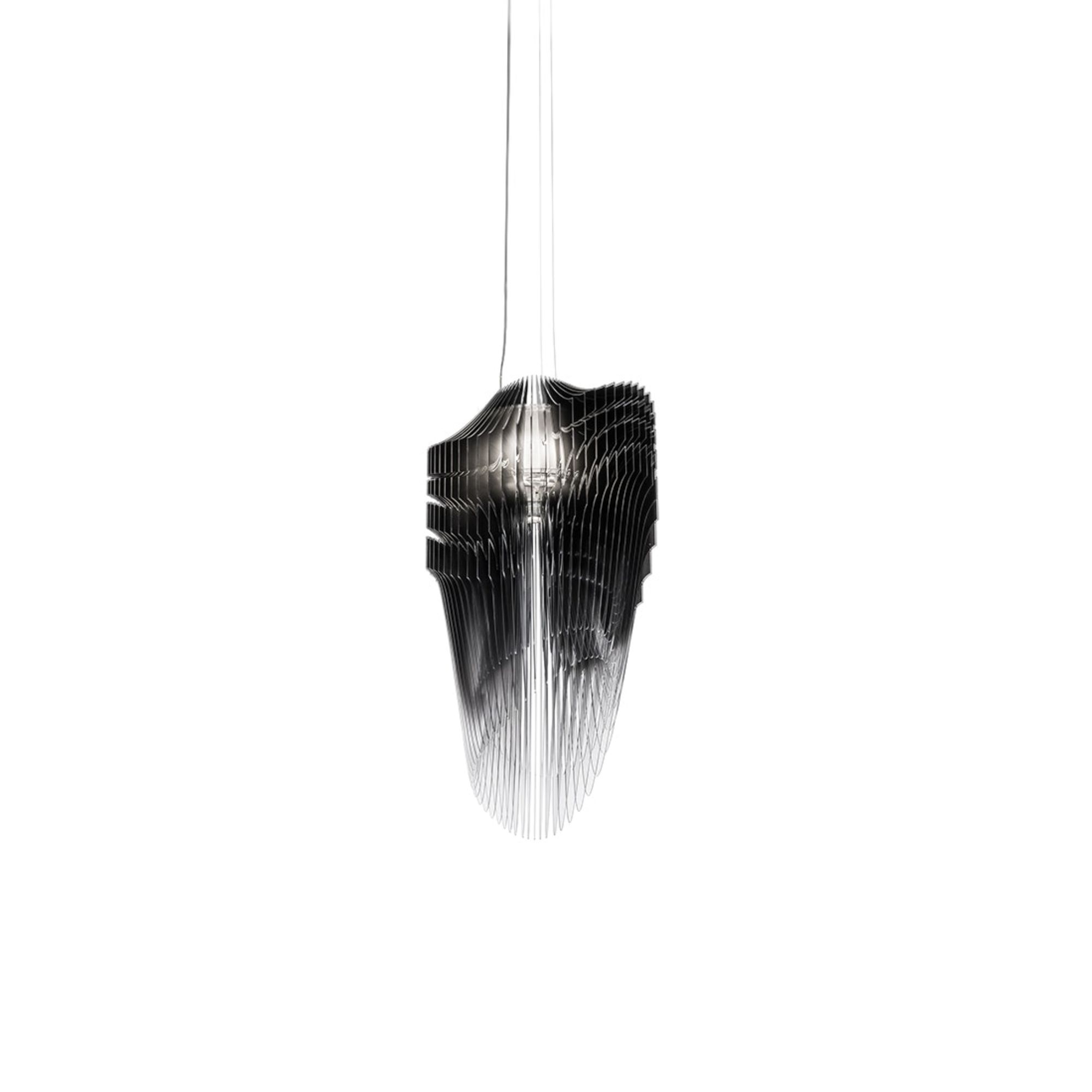 La lampada a sospensione Avia, nella sua versione small, è un'opera maestosa ed elegante nel mondo dell'illuminazione, realizzata in Cristalflex®, materiale brevettato Slamp che si distingue per la sua brillantezza e leggerezza. La struttura della lampada è complessa e affascinante: composta da 50 differenti lance che avvolgono la sorgente luminosa LED, Avia si abbina armoniosamente a ogni stile e ambientazione, dall'ingresso classico ed elegante alla sala da pranzo contemporanea, dall'ufficio professionale al negozio espositivo. La sua presenza è in grado di trasformare uno spazio ordinario e semplice in un ambiente pieno di luce e design. Disponibile in due diverse finiture, è perfetta per illuminare con grande stile tutti gli angoli della vostra casa. Il design visionario, fluido e dinamico di Avia esprime la maestosità delle opere architettoniche in una lampada di utilizzo quotidiano. Disegnata da Zaha Hadid per Slamp.