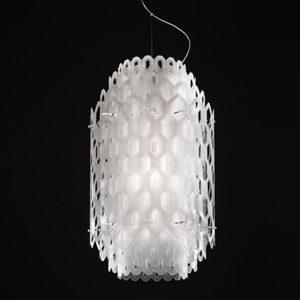 La lampada a sospensione Chantal Small è una creazione innovativa di Slamp che incarna design e funzionalità. Realizzata in Cristalflex® e Lentiflex®, questa lampada a sospensione presenta un'iconica trama forata disegnata da Studio Fuksas per Slamp, che crea un'ipnotica successione di ombre e riflessi che la rende abbinabile a qualsiasi ambientazione: perfetta per essere appesa sopra un tavolo da pranzo, in un soggiorno, in ufficio o in un ingresso, dove può accogliere gli ospiti con la sua presenza elegante ed eterea. La sua capacità di adattarsi a diversi stili di interior design la rende versatile e desiderabile per molti. Inoltre, l’attacco magnetico permette di manutenere e pulire il prodotto con facilità e disinvoltura. Grazie al suo design e alla sua maestosità, Chantal riesce a creare un'atmosfera intima e delicata. Disegnata da Doriana & Massimiliano Fuksas per Slamp.
