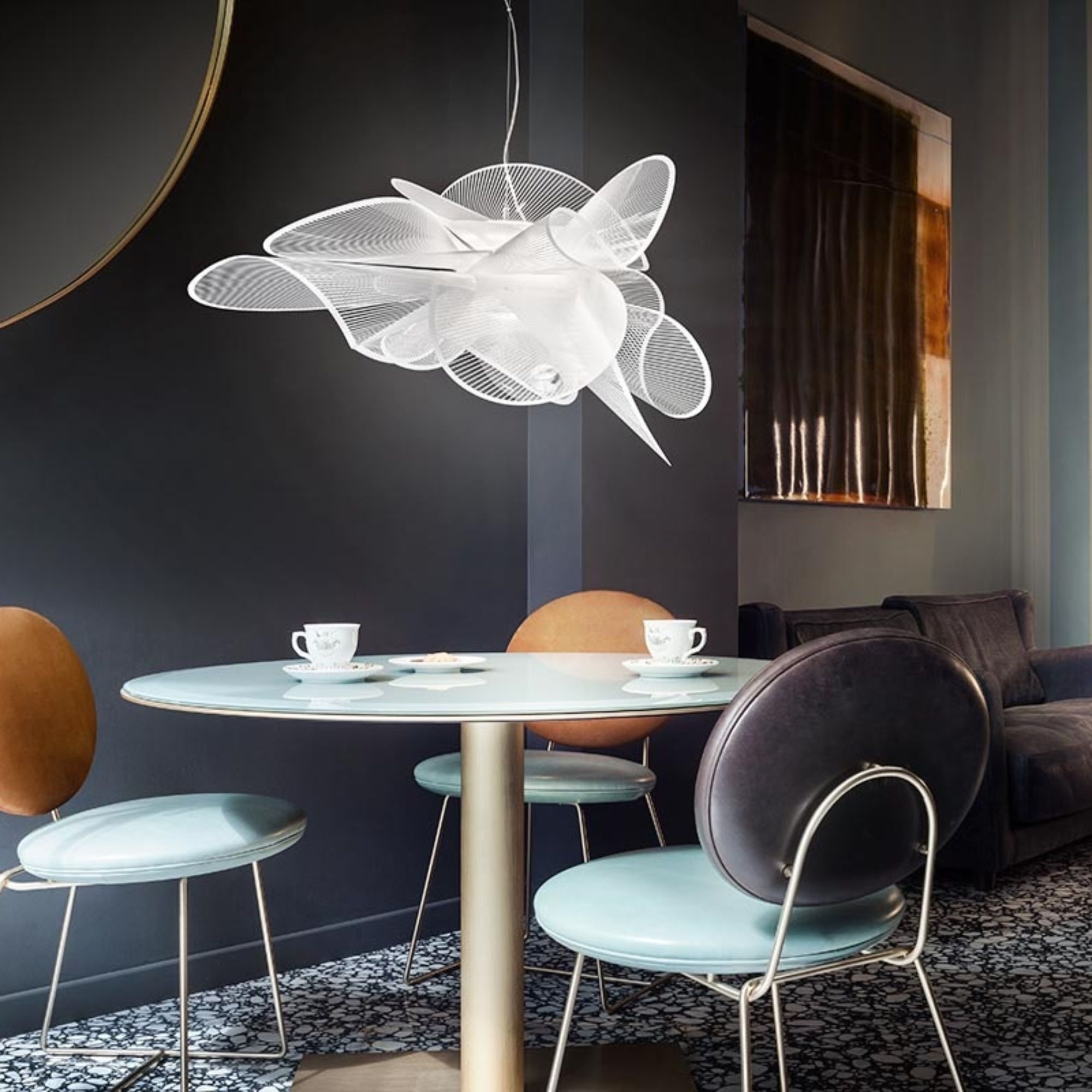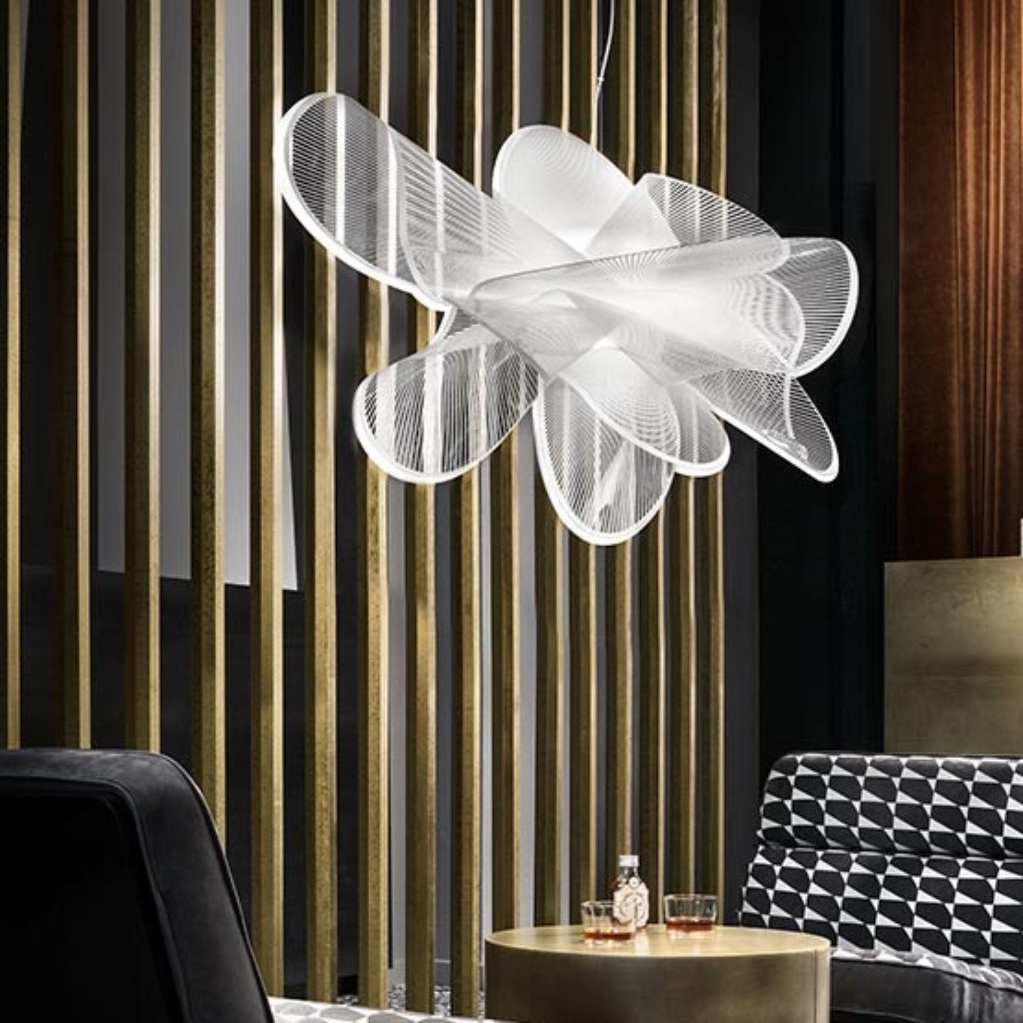 La lampada a sospensione La Belle Étoile, nella sua versione large, è una deliziosa opera d'arte realizzata in Cristalflex®, materiale brevettato Slamp che assicura resistenza e longevità. Questa splendida lampada a sospensione ha un design contemporaneo ed è disponibile in due colorazioni (nero e bianco); ciò la rende perfetta per essere abbinata a qualsiasi tipologia di contesto e stile di arredamento: si integra perfettamente negli ambienti dedicati alla convivialità, come la sala da pranzo o il soggiorno, ma trova la sua collocazione ideale anche in spazi di rappresentanza come reception o atri, dove l’arte della luce sa accogliere e stupire. Protagonista indiscussa della scultura luminosa è la luce, la cui intensità può variare da 0 a 100 per assecondare completamente i desideri delle persone che la circondano. Inoltre, la sorgente luminosa a LED è facilmente sostituibile tramite un attacco magnetico. Ideale per chi desidera unire prodotti illuminotecnici avanguardistici ed estetiche raffinate e glamour, che apportano bellezza e originalità anche alle mise in place più minimaliste. Disegnata da Adriano Rachele per Slamp.