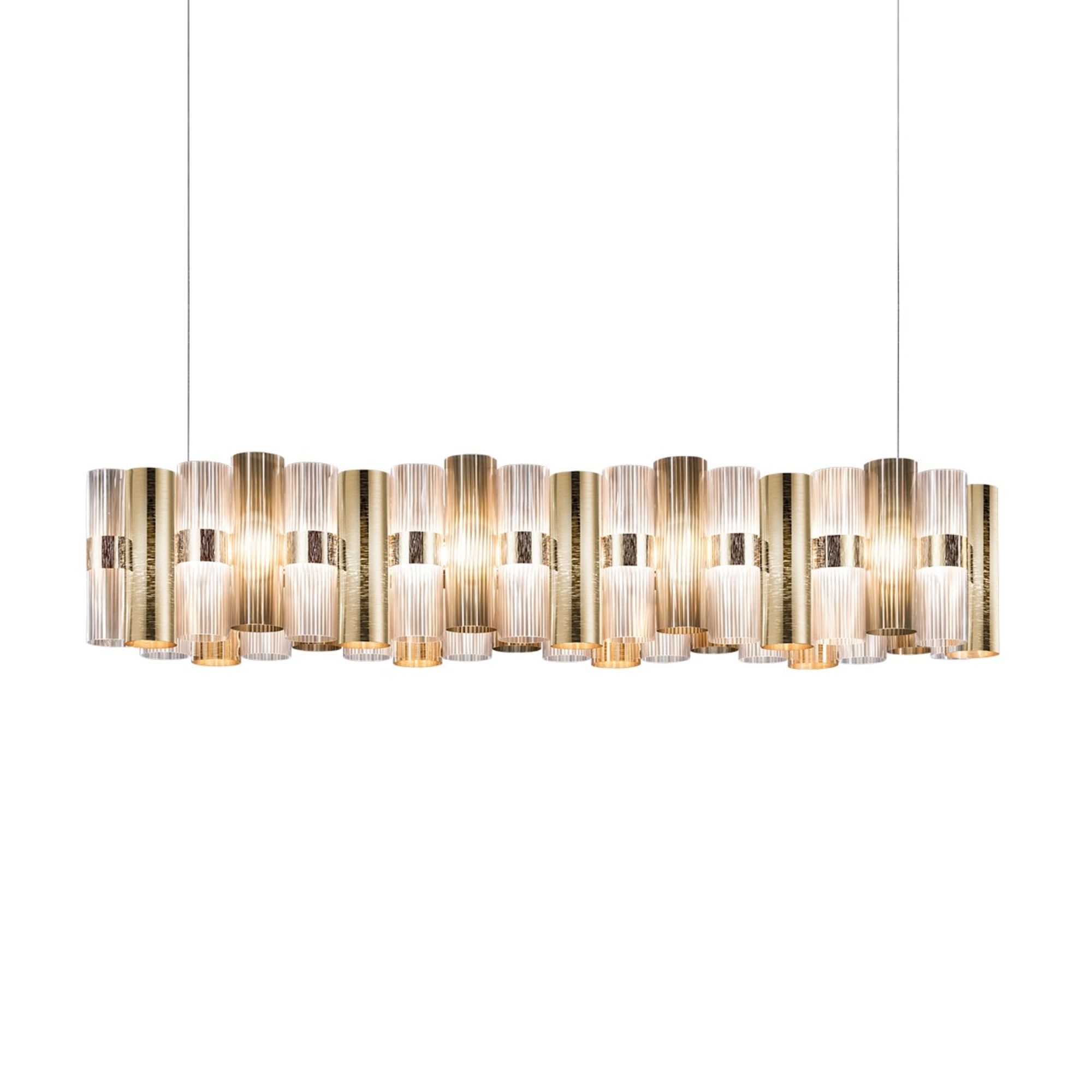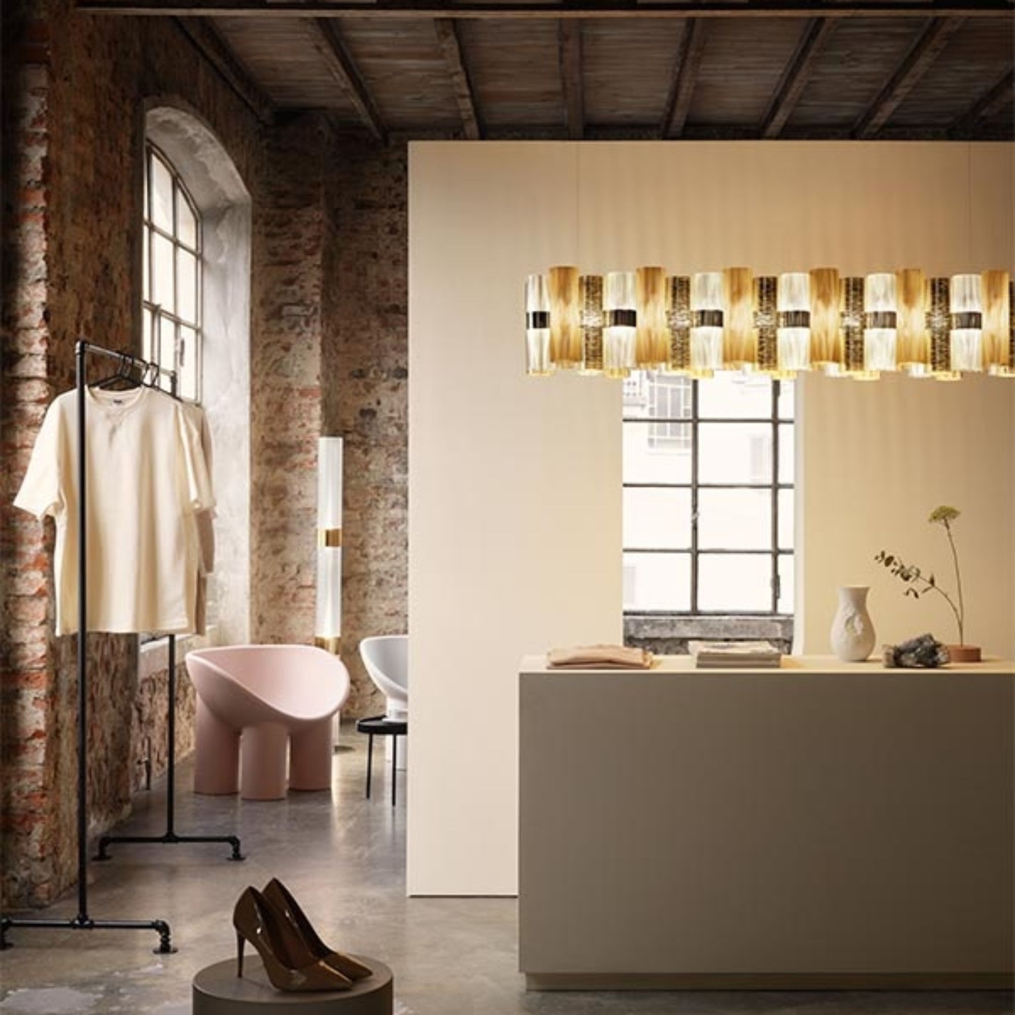 La lampada a sospensione La Lollo Linear 140, è un omaggio agli scintillanti anni '50 e al loro fascino retrò. Realizzata da Slamp in Lentiflex®, questa maestosa lampada a sospensione è composta da una serie di cilindri in tecnopolimero infrangibili e leggeri che sono disposti su un anello centrale con LED integrato. Questa versione di La Lollo ha una lunghezza di 140 cm ed è facile da installare, opulenta e drammatica. Inoltre, c'è una larga disponibilità di colorazioni, il che la rende perfettamente abbinabile a qualsiasi location: che sia posizionata all'interno di un salotto, in sala da pranzo, in spazi commerciali come hall di hotel oppure ristoranti, La Lollo Linear crea un'atmosfera lussuosa e accogliente e aggiunge un tocco di gioia e vita. Disegnata da Lorenza Bozzoli per Slamp.