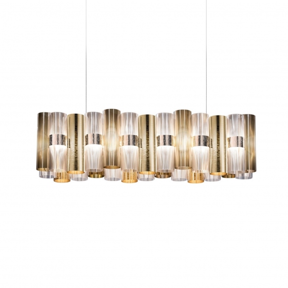 La lampada a sospensione La Lollo Linear 100, è un omaggio agli scintillanti anni '50 e al loro fascino retrò. Realizzata da Slamp in Lentiflex®, questa maestosa lampada a sospensione è composta da una serie di cilindri in tecnopolimero infrangibili e leggeri che sono disposti su un anello centrale con LED integrato. Questa versione di La Lollo ha una lunghezza di 100 cm ed è facile da installare, opulenta e drammatica. Inoltre, c'è una larga disponibilità di colorazioni, il che la rende perfettamente abbinabile a qualsiasi location: che sia posizionata all'interno di un salotto, in sala da pranzo, in spazi commerciali come hall di hotel oppure ristoranti, La Lollo Linear crea un'atmosfera lussuosa e accogliente e aggiunge un tocco di gioia e vita. Disegnata da Lorenza Bozzoli per Slamp.