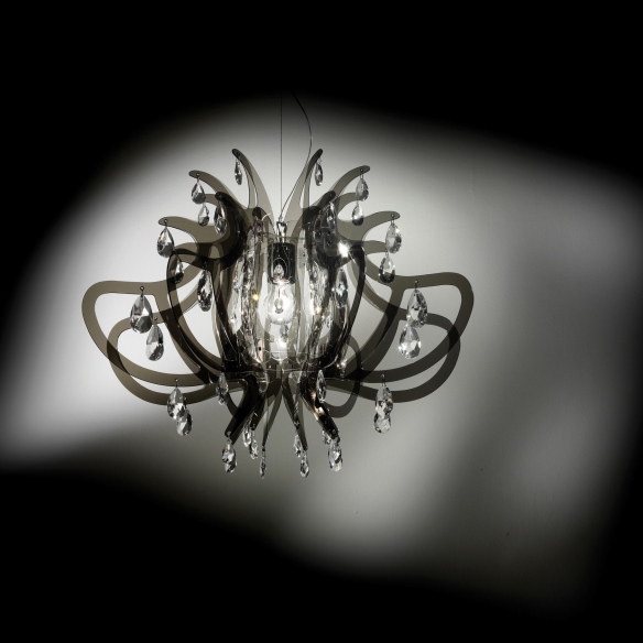 La lampada a sospensione Lillibet è un gioiello fortemente scenografico realizzato da Slamp con una struttura radiale in Opalflex® che si aggancia facilmente al cestello centrale in Cristalflex®, materiale brillante, trasparente e infrangibile di Slamp. Arricchita dalla preziosità dei cristalli che riflettono la luce dalla sorgente luminosa creando riflessioni multiformi nell’ambiente circostante, Lillibet è una sospensione che non passa di certo inosservata. Nasce, insieme alla collezione Medusa, negli anni 2000, e ha segnato in maniera indelebile l’evoluzione artistica di Slamp. Si abbina perfettamente a qualsiasi ambientazione grazie anche alle sue due diverse colorazioni: che sia posizionata all'interno di un salotto, sopra il tavolo da pranzo oppure in uffici o sale di attesa lussuose, Lillibet cattura l'attenzione. La sua presenza illumina e arricchisce lo spazio circostante, dimostrando che l'illuminazione può andare oltre la sua funzione pratica e diventare un elemento centrale nell'arredamento di una casa. Disegnata da Nigel Coates per Slamp.