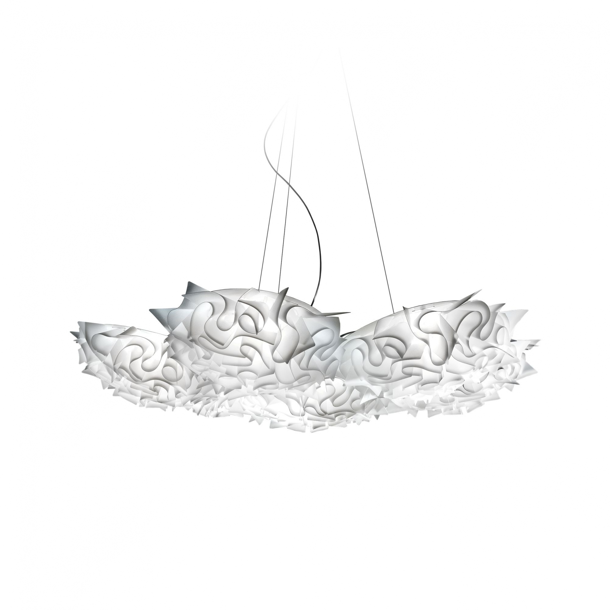 La lampada a sospensione Veli 7 è una vera e propria opera d'arte illuminotecnica realizzata da Slamp in Opalflex®, un innovativo tecnopolimero brevettato Slamp che garantisce resistenza e leggerezza. Il suo decoro, dal diametro di 130 cm, è composto da 7 elementi congiunti tramite un sofisticato sistema di incastri eseguiti a mano. Iconica e glamour illumina tutti gli ambienti con stile e personalità ed è disponibile in tante splendide colorazioni: che sia posizionata in camera da letto, in salotto oppure in spazi commerciali come ristoranti o negozi chic, Veli 7 diffonde una luce calda e accogliente. La lampada a sospensione Veli 7 di Slamp rappresenta l’eccellenza nel panorama del design illuminotecnico: un connubio vincente tra funzionalità e bellezza visiva, rende questa creazione un must-have per gli amanti del design e per chiunque desideri arricchire i propri spazi con un elemento luminoso unico e di grande impatto. Disegnata da Adriano Rachele per Slamp.