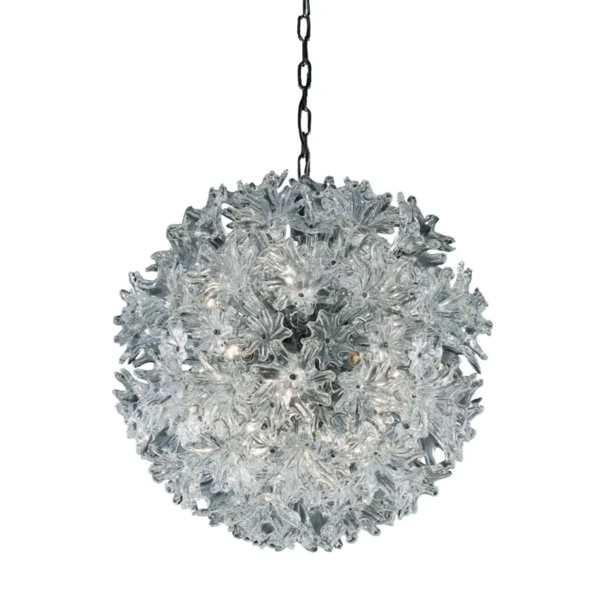 Lampada a sospensione Esprit 959.05 realizzata in vetro di Murano. Disponibile in 2 colorazioni, la lampada a sospensione Esprit è una meraviglia di design che si manifesta come un bouquet di luce. Nata dalla maestria e dalla creatività di Toni Zuccheri nel 1970, ogni variante dell'Esprit è una celebrazione della natura, trasformando elementi ispirati sia al mondo vegetale che animale in moduli di vetro cristallo o cristallo e ambra, lavorati a mano con estrema cura. Il modello Esprit risplende nella sua forma sferica, una composizione di moduli a forma di fiori che emergono dal centro in metallo cromato, promettendo di portare un pezzo di natura eterea e illuminata dentro qualsiasi ambiente. Ideale per chi ama il design ispirato dalla natura, la lampada a sospensione Esprit è un'opera d'arte che illumina spazi con una luce soffusa e calda, aggiungendo un tocco di eleganza organica e raffinata ai tuoi interni.