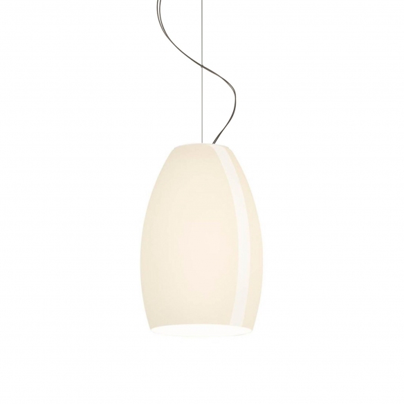 Lampada da sospensione a luce diffusa Buds 1 realizzata con diffusore in vetro incamiciato soffiato a bocca, bianco all'interno e colorato all'esterno, supporto del diffusore in policarbonato stampato a iniezione, cavo di sospensione in acciaio inox e rosone a soffitto in ABS bianco lucido. La forma allungata e le linee precise si combinano con la delicatezza del vetro soffiato, formando una lampada unica e inimitabile. Disegnata da Rodolfo Dordoni per Foscarini.