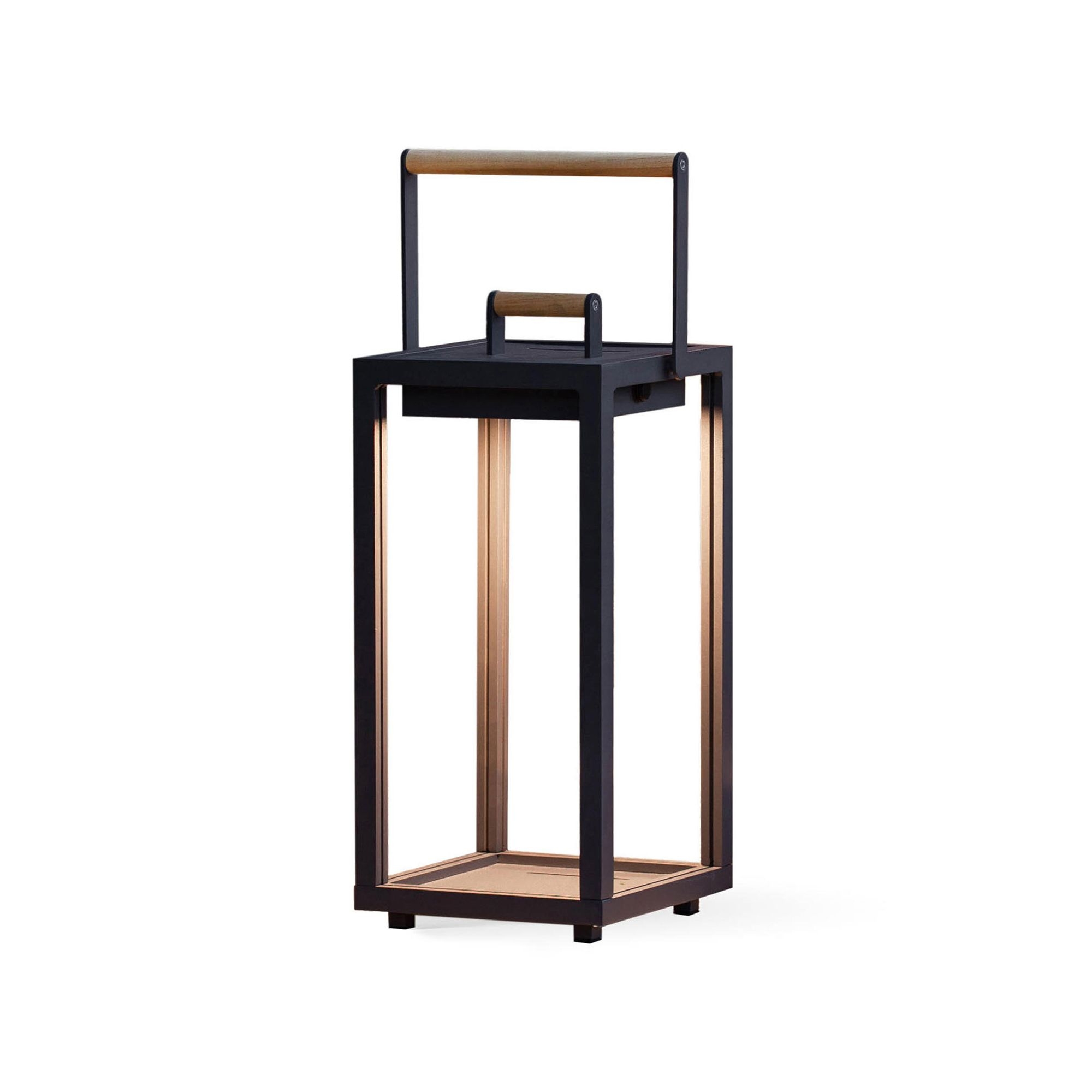 Lampada da esterno ricaricabile Alba realizzata in alluminio con dettagli in teak. Disponibile in 2 colori, la lampada outdoor Alba rappresenta un'innovativa soluzione di illuminazione. Perfetta per illuminare spazi aperti, questa lampada è particolarmente resistente all'umidità, grazie a un grado di protezione IP44, rendendola ideale per ogni contesto all'aperto. Dotata di una sorgente LED da 4W con una temperatura di colore di 2700K, Alba offre una luce calda e accogliente, in grado di creare un'atmosfera intima e rilassante. La lampada viene fornita con un caricatore incluso (8,4V max 3A) e un cavo lungo 3 metri per una ricarica semplice e veloce. È importante notare che non va inserita una candela all'interno della sua struttura, che è intenzionalmente priva di pareti in plexiglass per mantenere un design pulito e minimale. L'Alba è la scelta perfetta per coloro che cercano un'illuminazione da esterno pratica, ricaricabile e di grande impatto estetico, in grado di personalizzare con stile gli spazi all'aperto. Disegnata da Atmosphera Creative Lab.