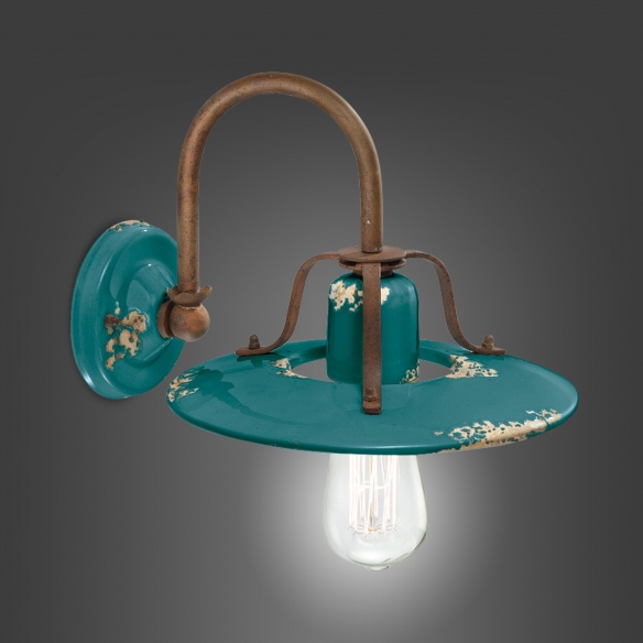 Lampada da parete C1440 realizzata in ceramica con montatura in ferro anticato cor-ten. Disponibile in diversi colori per adattarsi al tuo stile e arredamento, la lampada da parete C1410 è l'ideale per illuminare un corridoio, un salotto o l'ingresso e regalare fascino ai tuoi spazi con un diffusore che ricorda le lampade d'altri tempi e un effetto ruggine volutamente ricreato sulla ceramica. Sorgente luminosa 1x77W E27 - IP20. Progettata e realizzata da Ferroluce.