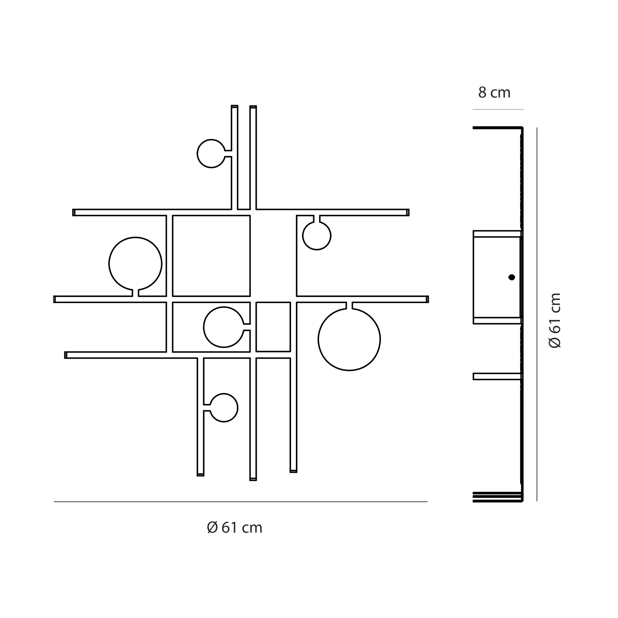 Dimensioni: Larghezza 61 cm, Altezza 61 cm, Profondità 8 cm