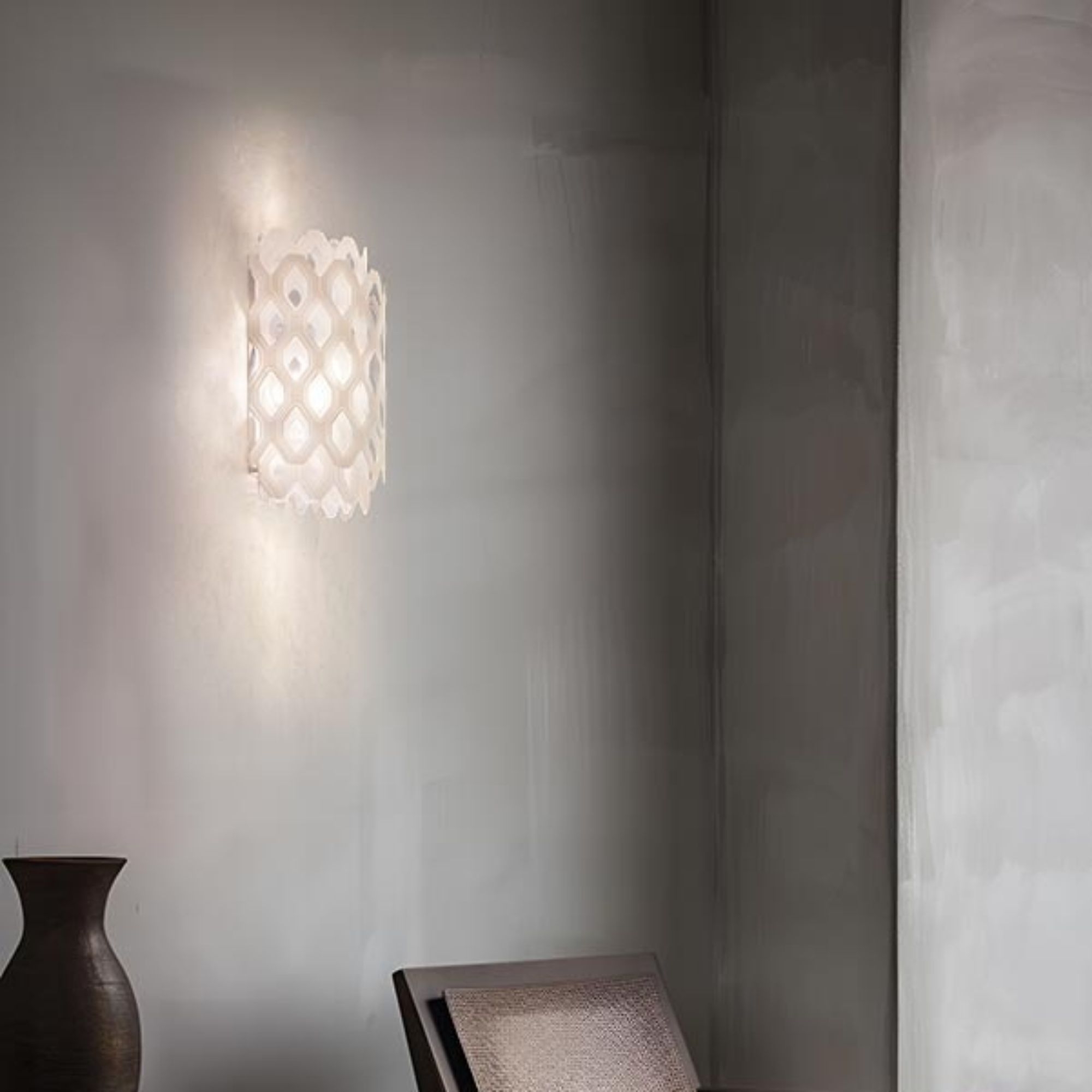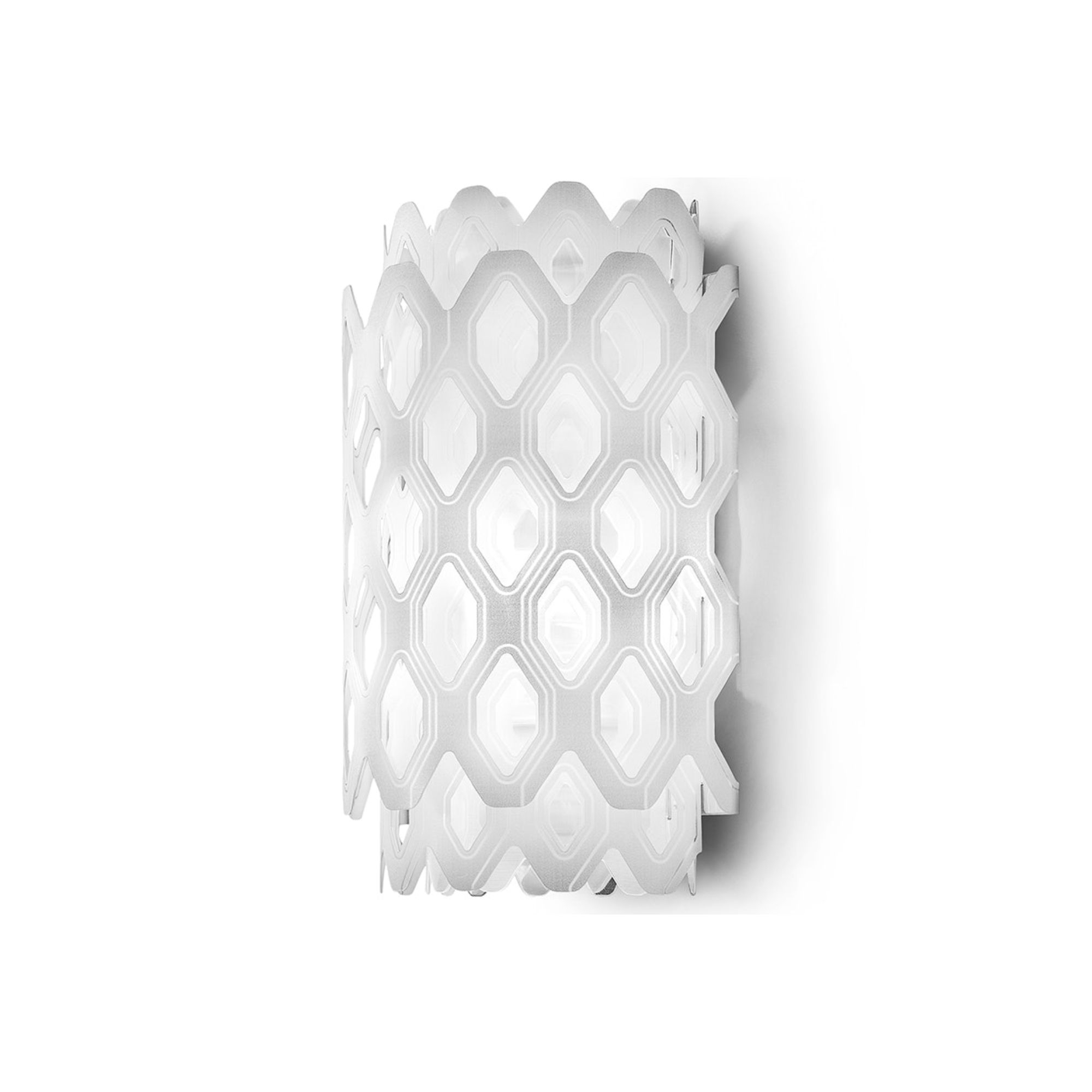 La lampada da parete Charlotte Applique è una vera e propria espressione di arte e tecnologia realizzata da Slamp in Cristalflex® e Lentiflex®, materiali innovativi di Slamp, infrangibili ed estremamente leggeri. Questa lampada da parete ha un design contemporaneo e classico grazie al decoro geometrico forato che emette una luce calda e intima. La lampada è adattabile perfettamente a qualsiasi tipologia di contesto: posizionata in salotto, in un corridoio, o come punto luce in ufficio, Charlotte Applique promette di essere non solo una fonte di luce, ma anche un punto focale di grande impatto estetico. L'estetica della lampada Charlotte Applique si distingue per le sue linee pulite e la sua forma, creando un equilibrio perfetto tra pienezza e vuoto. Charlotte Applique è una lampada da parete dotata di un duplice sistema di appendimento: come un quadro, per chi vuole evitare di forare la parete, o con punti di ancoraggio a muro per chi preferisce una maggiore sicurezza. Questo pezzo di design si abbina a vari stili di arredamento, dal moderno al classico, grazie alla sua capacità di fondere innovazione tecnologica e bellezza senza tempo. Disegnata da Doriana & Massimiliano Fuksas per Slamp.