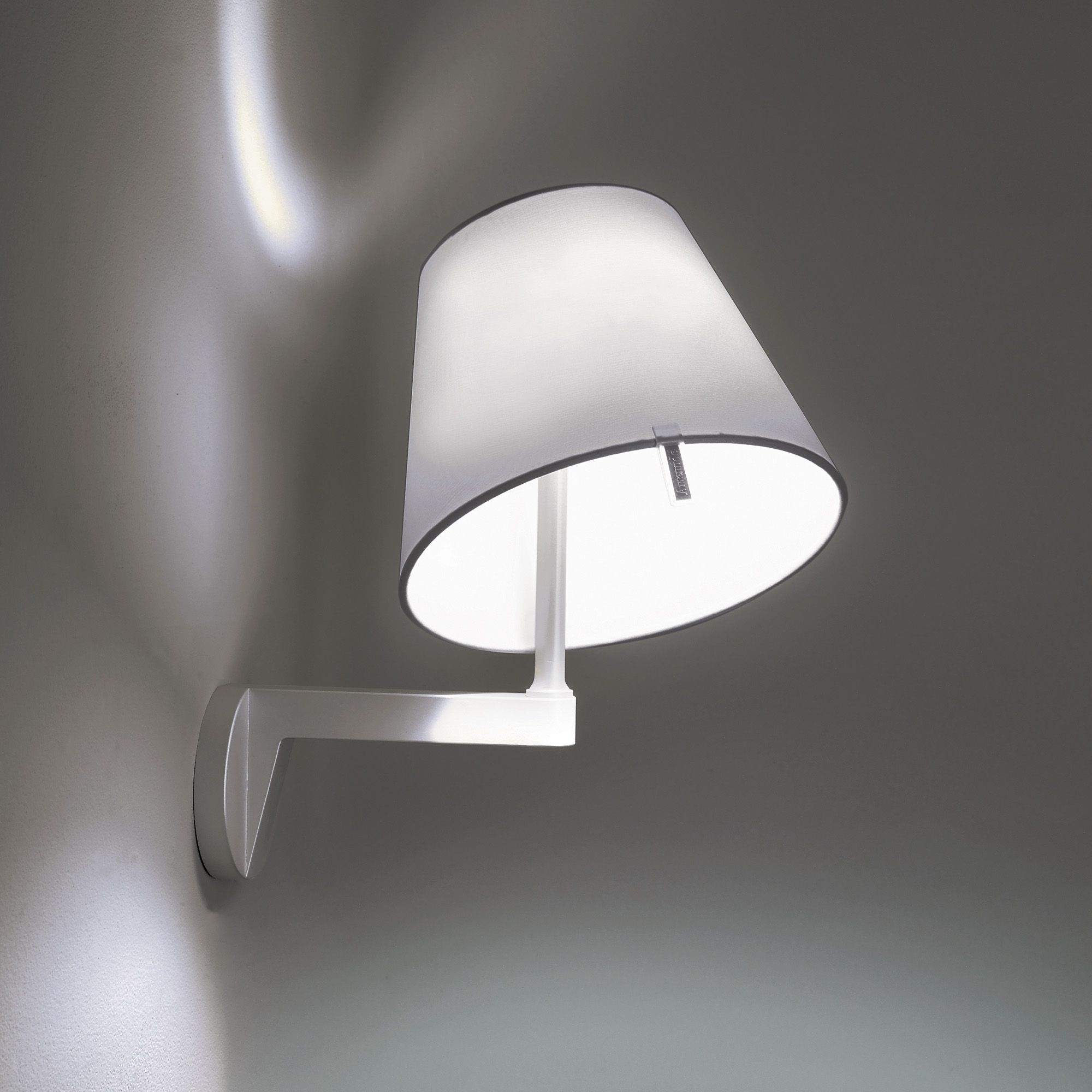 Lampada da parete Melampo con diffusore realizzato in raso di seta e materiale plastico da supporto e stelo in alluminio verniciato. Elegante e moderna, la lampada Melampo a luce diffusa e dimmerabile è l'ideale in ogni angolo della casa. Il diffusore è inclinabile di 30° o 45° per creare l'atmosfera giusta e disponibile in due colori. Sorgente luminosa LED retrofit 1x6W E14 - 349 lm - CRI 80 - Efficienza 74% (non fornita). Disegnata da Adrien Gardère per Artemide.