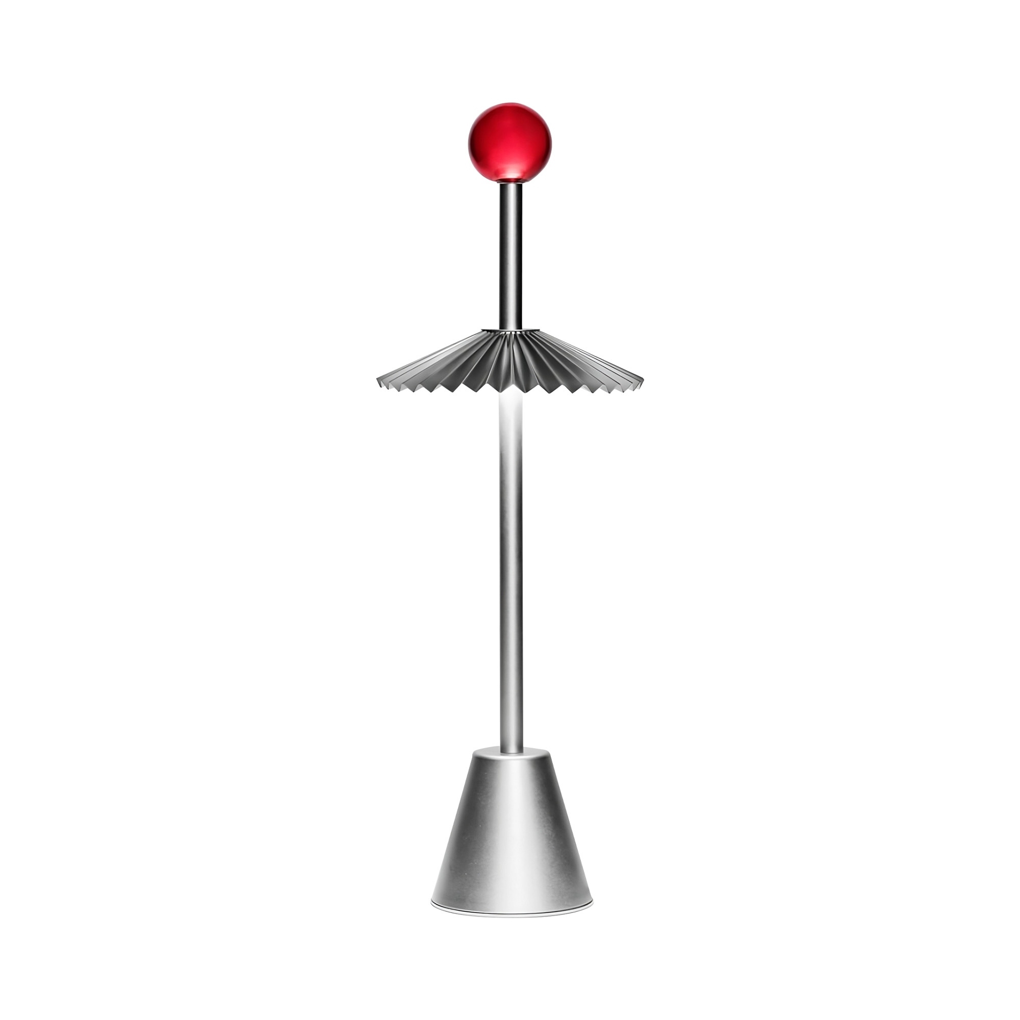 Lampada da tavolo ricaricabile Etoile realizzata con struttura in alluminio verniciato e pomolo in vetro soffiato. Disponibile in 3 finiture di colore, la lampada da tavolo Etoile è una lampada dal design snello e leggero, che si ispira alla figura di una ballerina. La lampada ha una struttura in metallo verniciato, disponibile in diversi colori, che sostiene un tutù in tessuto traslucido. Il tutù nasconde un LED dalla luce intima e calda, che crea un’atmosfera di eleganza e allegria. La lampada è alimentata da batterie, pertanto senza fili e facilmente trasferibile. Disegnata da Daniela Puppa per Firmamento Milano.