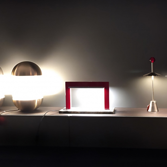 La lampada da tavolo Trilite di Firmamento Milano è una vera e propria micro architettura pensata per il tuo ambiente domestico. In un'epoca in cui le architetture spesso si presentano come massicci oggetti urbani, Trilite è l'esatto opposto: un piccolo gioiello da tavolo che porta con sé un'aura di eleganza discreta. Il design di Trilite è un'ode alla sobrietà e all'eclettismo. Questa piccola architettura da tavolo è come un portale di luce che delicatamente illumina tutto ciò che la circonda. La sua base in marmo conferisce un senso di importanza e stabilità, mentre il portale laccato rosso lucido aggiunge un tocco di audacia e raffinatezza. Il cuore di Trilite è rappresentato da una sottile tegola di alluminio, che diffonde la luce in modo delicato e omogeneo. Questa lampada da tavolo è progettata per chi apprezza il concetto del "meno è più". La sua semplicità è affascinante e il suo impatto visivo è unico. Per coloro che prediligono un'estetica più neutra, Trilite è disponibile anche nella versione bianca. Questa opzione si adatta perfettamente a un'ampia gamma di stili d'arredamento, offrendo la stessa eleganza discreta in una tonalità più delicata.