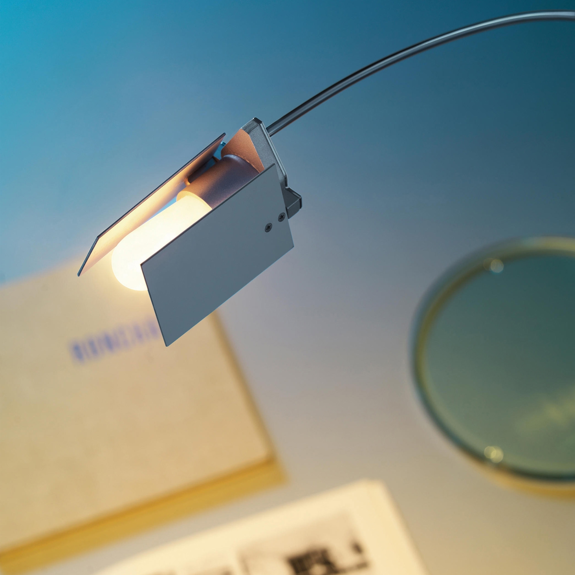 Lampada da tavolo Falena realizzata con montatura in metallo cromato con corpo orientabile, alette diffusori, orientabili, in alluminio anodizzato e schermo di protezione lampadina in vetro sabbiato. Compatta ma sofisticata, la lampada da tavolo Falena si distingue per la sua incredibile leggerezza visiva e per la raffinata eleganza del design. Falena è stata concepita con particolare attenzione alla gestione della luce. Il corpo della lampada, insieme alle sue alette diffusori, è totalmente orientabile, permettendo così di dirigere la luce secondo necessità. Questa caratteristica ne fa la scelta ideale per chi cerca una luce d'accento personalizzabile o per chi ha bisogno di illuminare specifici angoli di uno spazio. La lampada da tavolo Falena non è solo un apparecchio di illuminazione: è un vero e proprio oggetto di design, capace di impreziosire la parete su cui viene installata. La possibilità di regolare l'intensità della luce offre comunque un certo grado di personalizzazione dell'illuminazione, rendendo ogni spazio unico e accogliente. Sorgente luminosa 1x max 50W GY6.35. Disegnata da Alvaro Siza per Fontana Arte.