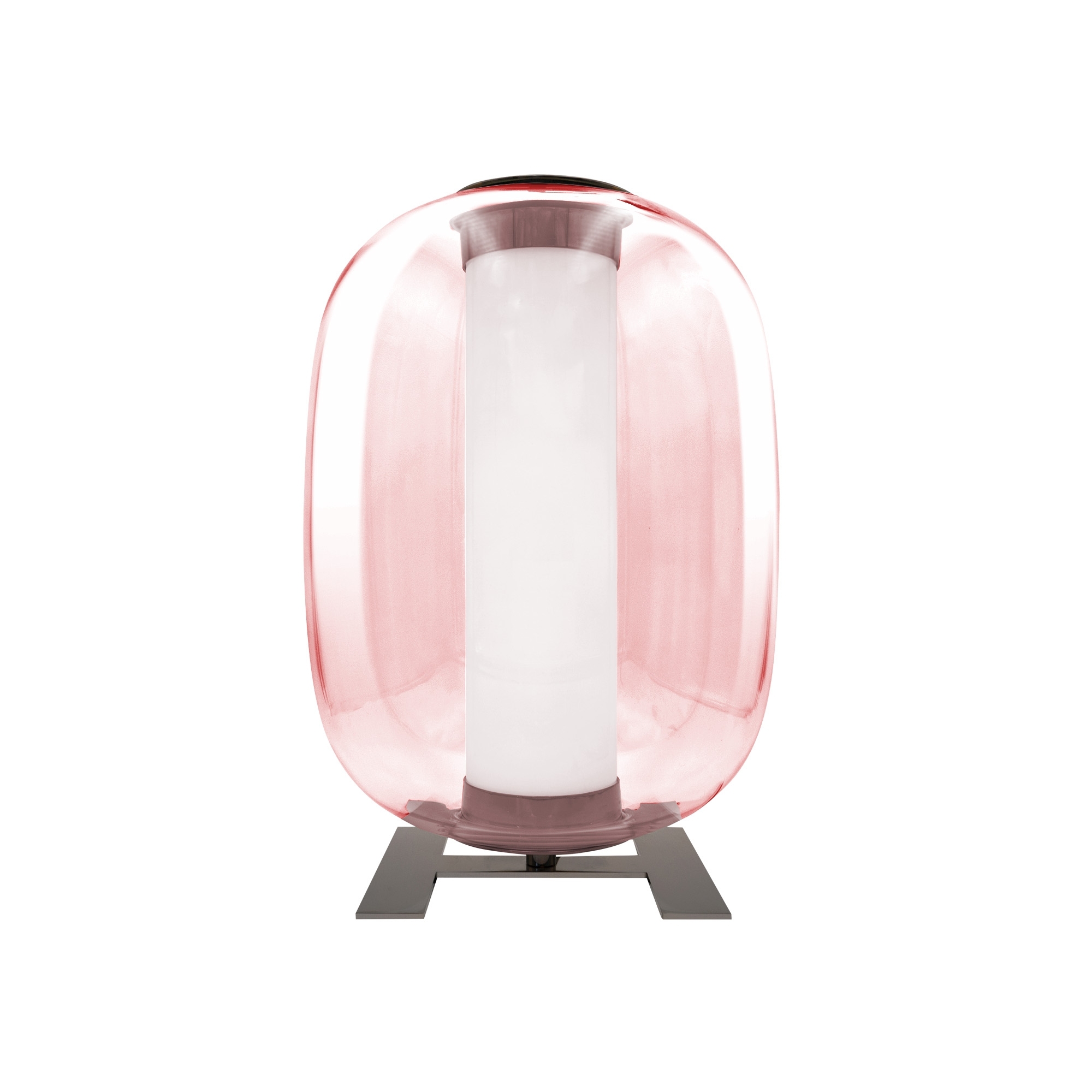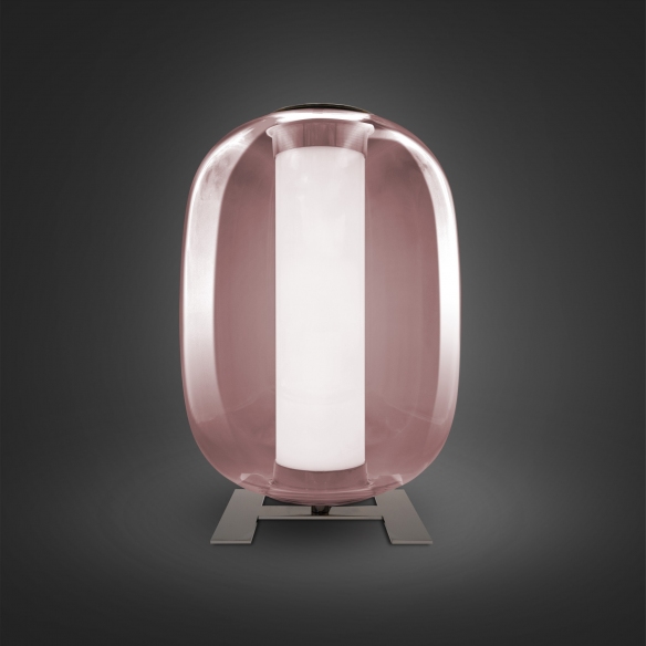 La lampada da tavolo Meridiano di Fontana Arte è stata realizzata con una struttura in metallo nichelato, diffusore esterno in vetro soffiato, diffusore interno in vetro Pyrex verniciato internamente, e rappresenta l'apoteosi del design. Disponibile in tre finissime finiture cromatiche, la lampada da tavolo Meridiano unisce design innovativo e qualità artistica, che si integra armoniosamente con qualsiasi stile di arredamento, da un soggiorno dal design minimalista ad una camera da letto dallo stile moderno e all'avanguardia. Il design unico di Meridiano è caratterizzato da una capsula in vetro trasparente che racchiude la sorgente luminosa, creando un effetto estetico raffinato e moderno. La possibilità di utilizzo singolarmente o in composizioni multiple disposte a grappolo gli permette di adattarsi a diversi spazi ed esigenze di illuminazione, rendendolo una soluzione ideale per ambienti residenziali ed espositivi. Fontana Arte continua a offrire soluzioni che non solo illuminano gli spazi ma li trasformano, rendendo la lampada da tavolo Meridiano un perfetto esempio della loro filosofia progettuale. Sorgente luminosa LED 25W (2700K, CRI>90, 2900Lm). Progettato da Gabriele e Oscar Buratti per Fontana Arte.