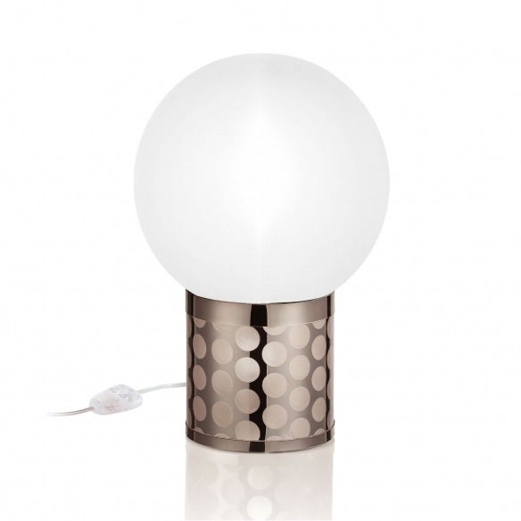 La lampada da tavolo Atmosfera, nella sua versione medium, è una fusione squisita di arte e design, realizzata in metacrilato e Goldflex® o Pewterflex®, materiali brevettati Slamp che assicurano eleganza, resistenza e brillantezza. Dal look glam retrò, la lampada da tavolo Atmosfera ha una base a pois che nasce dalla sovrapposizione di due strati del materiale sostenibile di Slamp: quello di sotto lavorato a mano e quello sovrastante metallizzato. Ciò dona alla lampada uno stile unico e irraggiungibile. Una gonnellina di frange in stile cherleston, invece, veste la base della versione “Fringe”. Questa abatjour è dotata di doppia accensione indipendente della base e del diffusore per trasformarsi da oggetto d’arredo a luce di cortesia nelle ore più buie. Inoltre, questa lampada è facilmente abbinabile a qualsiasi ambientazione e stile di arredamento: si presta perfettamente sia agli ambienti domestici che a quelli più formali, come uffici o aree espositive, donando un tocco di classe e modernità. Il design gioca con luci e ombre, proiettando riflessi e motivi ambientali che arricchiscono l'atmosfera della stanza con una luminosità calda e diffusa. Disegnata da Lorenza Bozzoli per Slamp.