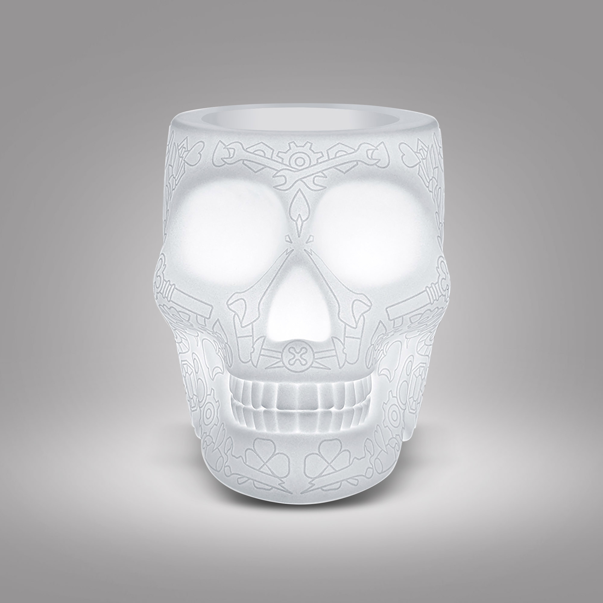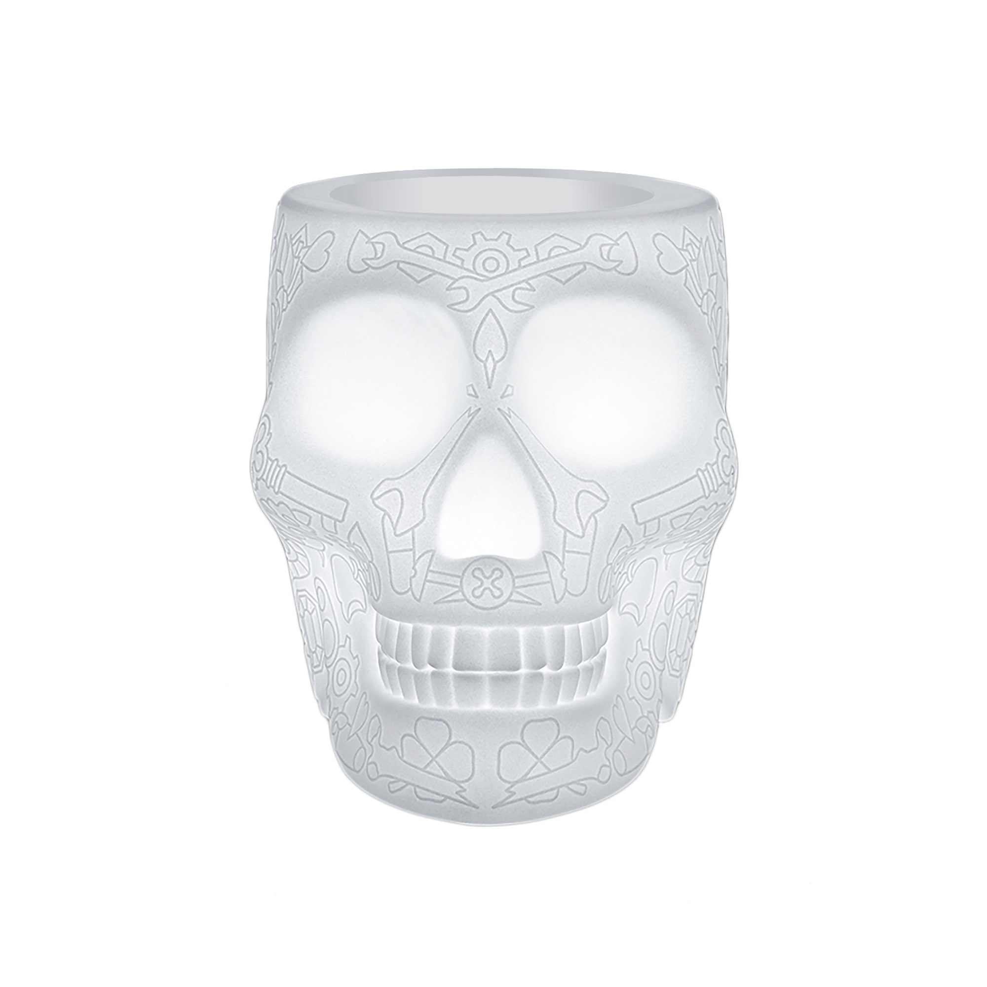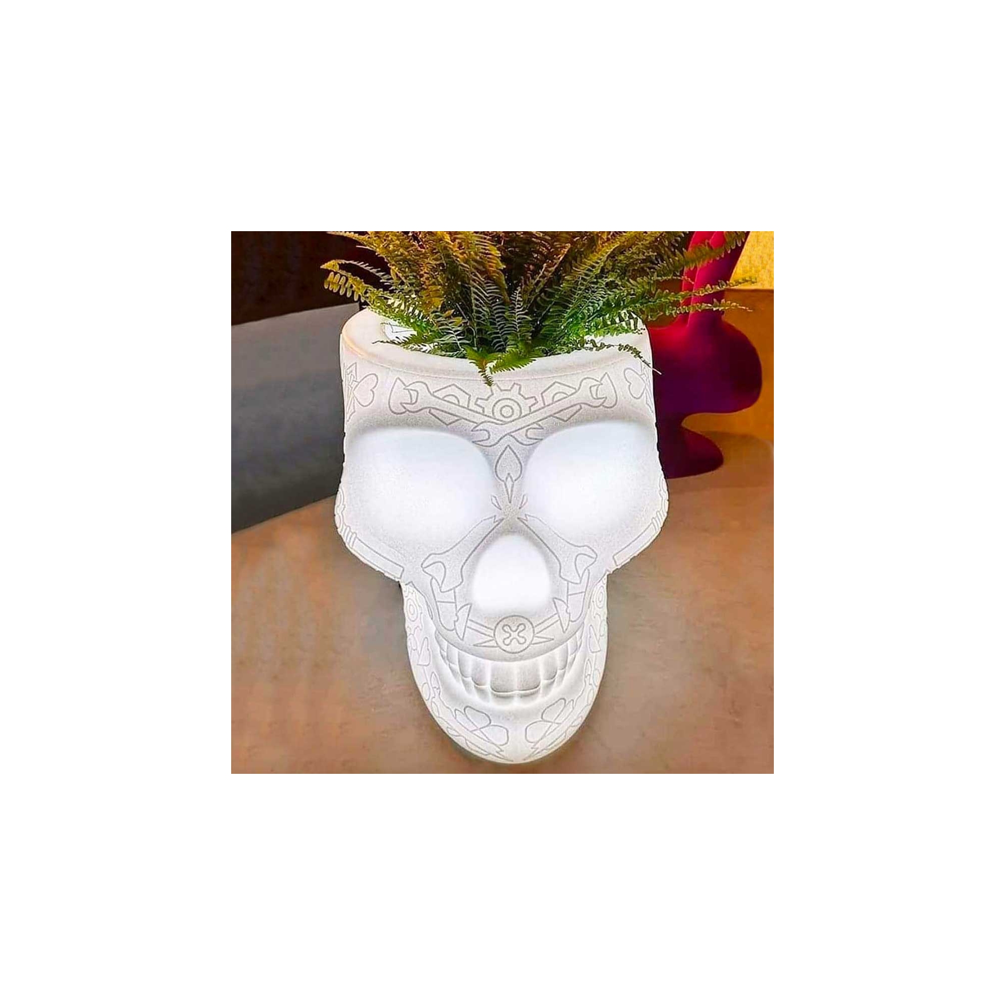 Il vaso Mexico indoor ricaricabile è un fantastico elemento di arredo realizzato da Qeeboo interamente in polietilene riciclabile che promette resistenza, longevità e facilità di manutenzione. Il vaso Mexico indoor ha un design fantasioso che ricorda i tradizionali teschi dipinti del Messico, un estroso richiamo alla ciclicità della nostra presenza sulla Terra, per esorcizzare la morte e celebrare la vita, ideale per integrarsi armoniosamente a qualsiasi ambientazione, soprattutto a spazi con design all'avanguardia; che si tratti di un salotto dallo stile minimalista oppure di un ingresso dallo stile moderno, il vaso Mexico diventerà il protagonista delle conversazioni tra amici e parenti, e catturerà sempre l'attenzione dei tuoi ospiti. Inoltre, il vaso Mexico ha una natura versatile: si presta sia come sia come vaso di fiori o piante, sia come unico e inimitabile pezzo di arredamento che arricchirà ogni stanza che addirittura come lampada che emana una luce soffusa e intima. Questo vaso indoor ricaricabile è la scelta ideale per tutti quelli che vogliono acquistare un prodotto all'insegna della creatività e del design. Disegnato da Studio Job per Qeeboo.
