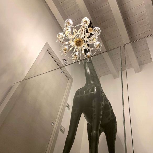 La lampada da terra Giraffe In Love M indoor è una giraffa alta 2,65 metri che regge un lampadario in stile Marie-Thérèse, realizzato da Qeeboo in polietilene riciclabile, policarbonato e vetro, materiali di alta qualità che garantiscono resistenza, longevità e flessibilità. Questa splendida lampada da terra indoor è disponibile in tre bellissime colorazioni, e grazie al suo design estremamente elegante, è in grado di integrarsi armoniosamente a qualsiasi ambientazione e stile di arredamento: che sia posizionata all'interno di un salotto dal design minimalista, oppure in una camera da letto dallo stile contemporaneo e moderno, la lampada da terra Giraffe in Love M catturerà l'attenzione dei vostri ospiti e diventerà protagonista indiscussa delle vostre conversazioni. Inoltre, questa lampada risplende per la sua estetica unica, ed è anche efficiente dal punto di vista energetico. La lampada da terra Giraffe In Love M indoor diventerà un oggetto di design versatile e giocoso che allontanerà ogni stress dalle tue giornate. Disegnata da Marcantonio Malerba per Qeeboo.