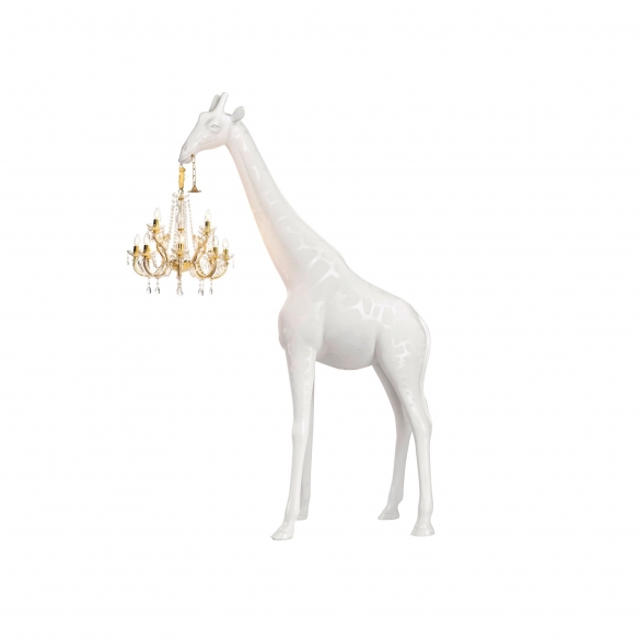 La lampada da terra Giraffe In Love M indoor è una giraffa alta 2,65 metri che regge un lampadario in stile Marie-Thérèse, realizzato da Qeeboo in polietilene riciclabile, policarbonato e vetro, materiali di alta qualità che garantiscono resistenza, longevità e flessibilità. Questa splendida lampada da terra indoor è disponibile in tre bellissime colorazioni, e grazie al suo design estremamente elegante, è in grado di integrarsi armoniosamente a qualsiasi ambientazione e stile di arredamento: che sia posizionata all'interno di un salotto dal design minimalista, oppure in una camera da letto dallo stile contemporaneo e moderno, la lampada da terra Giraffe in Love M catturerà l'attenzione dei vostri ospiti e diventerà protagonista indiscussa delle vostre conversazioni. Inoltre, questa lampada risplende per la sua estetica unica, ed è anche efficiente dal punto di vista energetico. La lampada da terra Giraffe In Love M indoor diventerà un oggetto di design versatile e giocoso che allontanerà ogni stress dalle tue giornate. Disegnata da Marcantonio Malerba per Qeeboo.