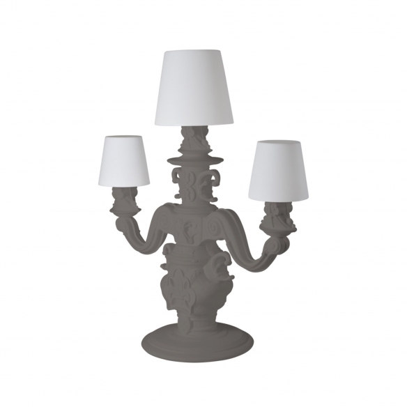 La lampada da terra King of Love è una maestosa creazione di Slide, realizzata interamente in polietilene riciclabile 100%, materiale ammirato per la sua versatilità, resistenza e longevità. La base della lampada è in stile barocco, mentre i tre ampi paralumi bianchi luminosi sono impreziositi da una texture di motivi classici, per ottenere un decoro raffinato, elegante e piacevole al tatto. Questa bellissima lampada da terra è disponibile in varie colorazioni e ciò la rende abbinabile a qualsiasi tipologia di arredamento, sia nelle ambientazioni indoor, sia in quelle outdoor: che sia posizionata in un giardino con piscina, all'entrata di casa oppure in terrazze chic, King of Love dimostra come il design possa essere sia audace che versatile. Lo stile ironico e pop dell’intera collezione della Design of Love caratterizza fortemente anche questa lampada da terra dalle dimensioni imponenti. La lampada da terra King of Love è senza dubbio la testimonianza della passione per il design che caratterizza il marchio SLIDE. Design di Moro & Pigatti per Slide.