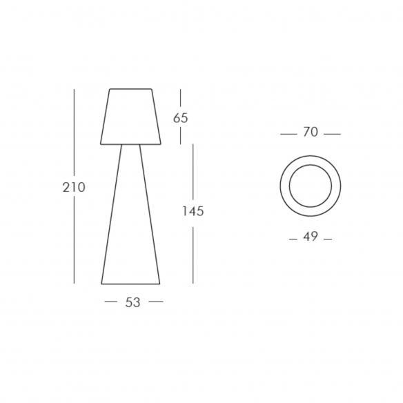 Dimensioni: Diametro 70 cm, Altezza 210 cm