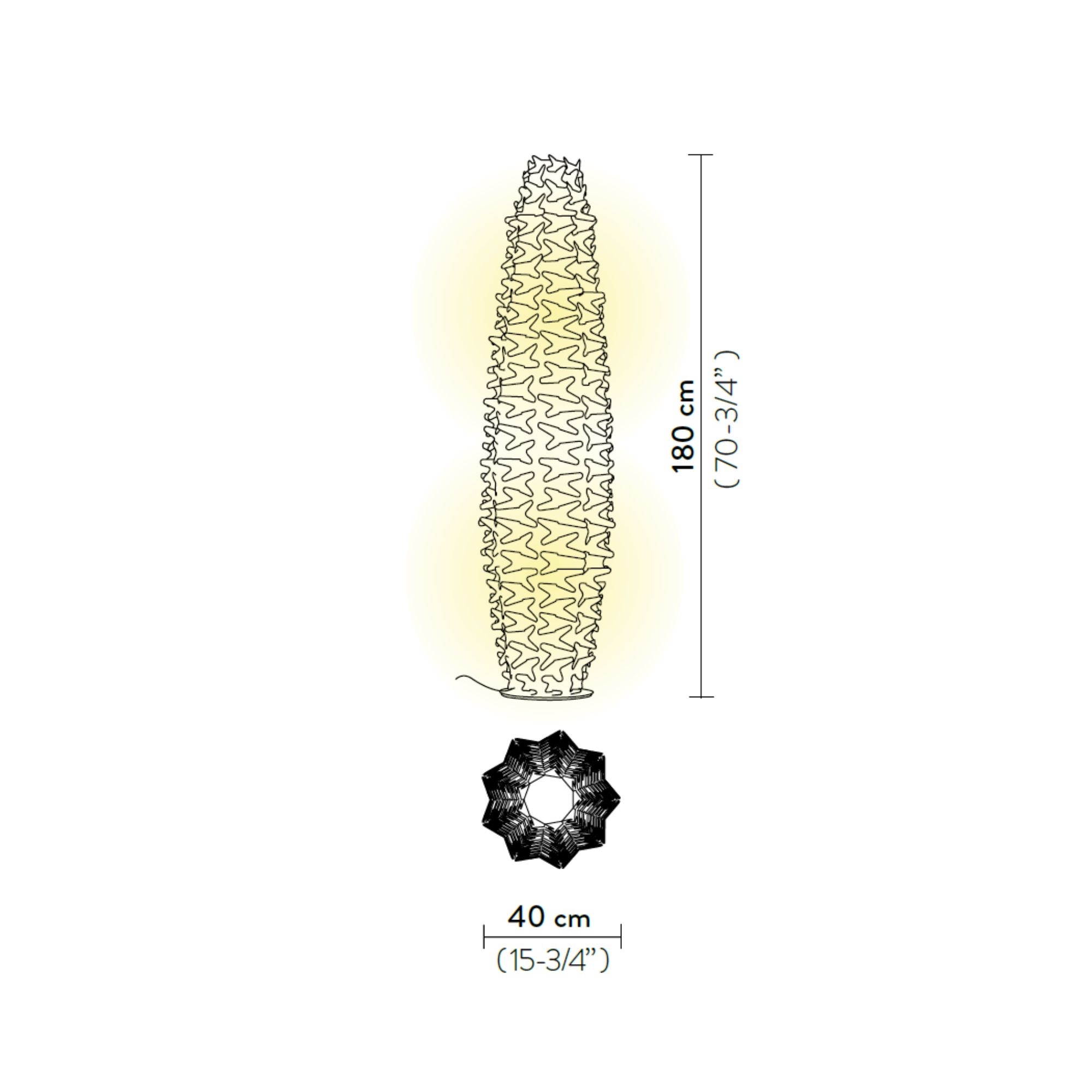 La lampada da terra Cactus XXL è una simpatica creazione di Slamp, realizzata in Opalflex®, materiale che conferisce alla lampada infrangibilità ed eleganza. Cactus si distingue per un design ironico e sofisticato, capace di creare un'atmosfera unica e suggestiva attraverso i mille riflessi di luce che si emanano dalle sue forme. Posizionabile in ambienti residenziali o commerciali, dalla sala da pranzo di un'abitazione alla lobby di un hotel, questa lampada può trasformarsi in un autentico simbolo distintivo dello spazio in cui si trova. Come per ogni creazione Slamp, il suo decoro è frutto di un complesso processo di incastri e piegature, realizzate a mano dalle Sarte della Luce nell'atelier creativo di Slamp. Il suo carattere inaspettato e divertente la rende una soluzione decorativa luminosa, sorprendente e mai banale. Disegnata da Adriano Rachele per Slamp.