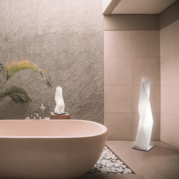 La lampada da terra Diamond, nella sua versione large, è una splendida creazione realizzata in Opalflex®, materiale brevettato Slamp che la rende infrangibile ed elegante. Questa lampada da terra ha un design scultoreo, moderno e dinamico, ed è ispirata alle opere di Brancusi. La lampada è disponibile in tre dimensioni, ciascuna adatta a diverse aree, dai comodini ai salotti, e quando raggruppate insieme, creano installazioni domestiche. Inoltre, il suo design geometrico consente alla luce di accentuare le sue varie sfaccettature e angolazioni, e si adatta a diverse tipologie di arredamento, da quello più classico a quello più moderno. Questa meravigliosa lampada da terra è un elemento d’arredo capace di trasformare lo spazio in cui viene inserito, rendendolo più accogliente, lussuoso e assolutamente unico. Disegnata da Paolucci - Statera per Slamp.