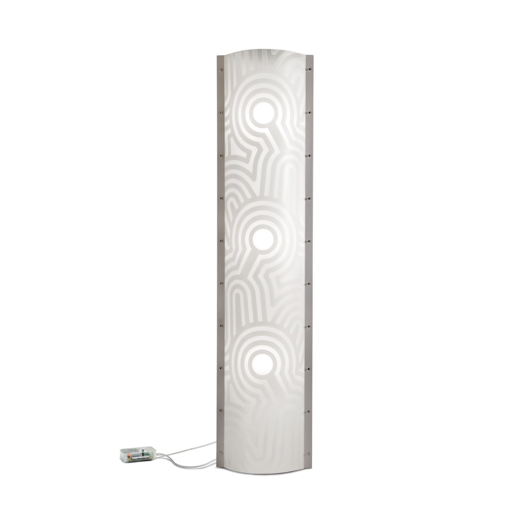 La lampada da terra Venti è una vera e propria espressione di eleganza contemporanea e innovazione tecnologica, ed è stata realizzata da Slamp interamente in Opalflex®, materiale innovativo che la rende leggera e facile da pulire. Come un sasso gettato nell’acqua, il decoro che caratterizza Venti Floor genera linee morbide e regolari: cerchi concentrici, sempre più grandi, in corrispondenza delle fonti luminose. Le colorazioni neutre tono su tono di questa piantana la avvolgono guidando le vibrazioni della luce, che trasmette un’atmosfera calma e rilassata, delicata e regolare come la marea, capace di adattarsi e arricchire ogni interior: che sia posizionata in salotti, camere da letto oppure in uffici o eleganti hall di hotel, la lampada Venti aggiunge bellezza e carattere a qualsiasi spazio. Con la lampada da terra Venti ogni ambiente diventa un’esperienza sensoriale arricchita dal design e dalla luce. Disegnata da Alessandro Mendini per Slamp.