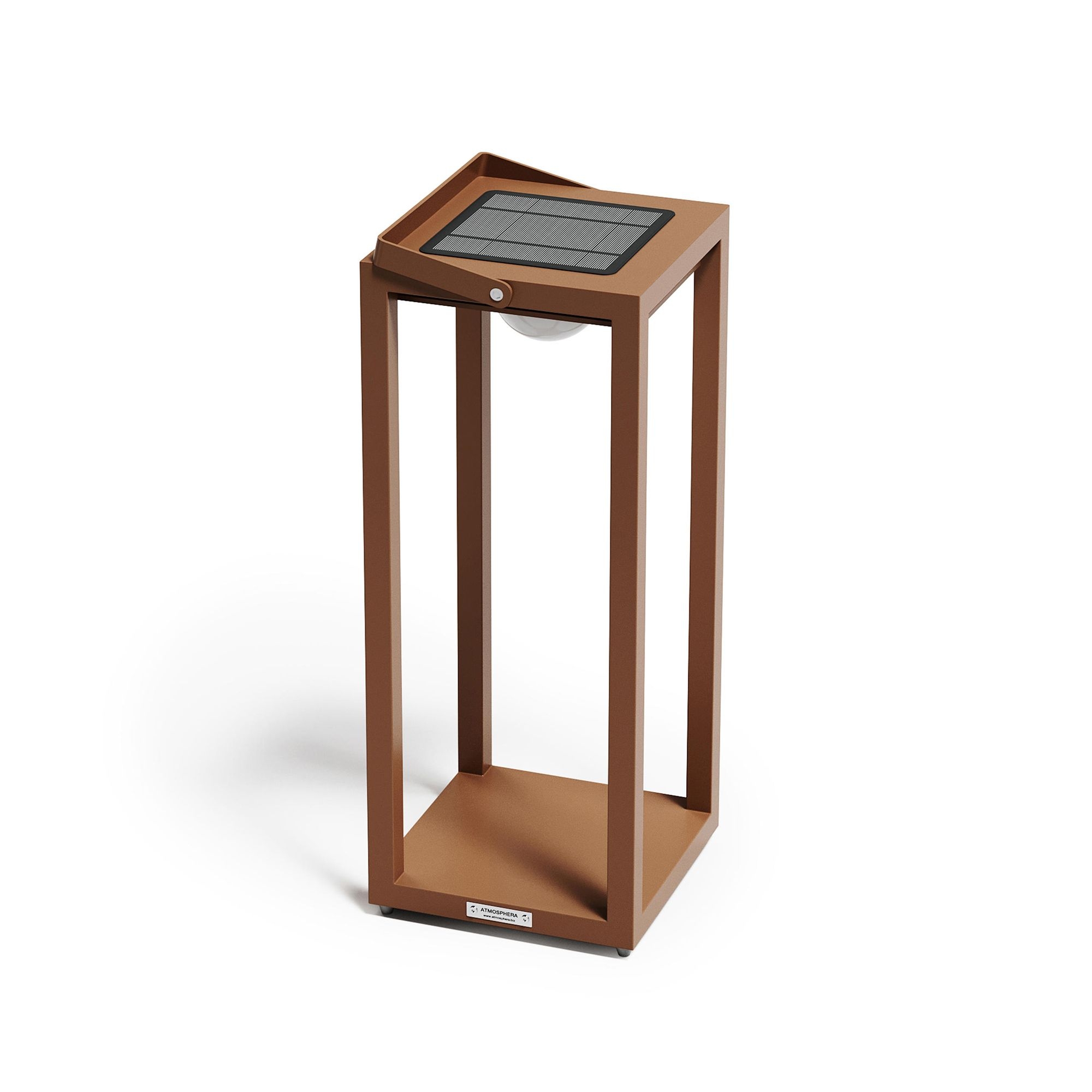Lanterna da esterno Astro realizzata in teak o alluminio. Disponibile in 4 colori, la lanterna outdoor Astro rappresenta un'aggiunta di puro stile e praticità per qualsiasi spazio aperto, elevando istantaneamente l'atmosfera delle serate trascorse all'aria aperta. Si distingue per il suo design raffinato e lineare, che non solo conferisce un tocco contemporaneo e sofisticato all'ambiente esterno, ma crea anche un’invitante atmosfera di benvenuto, perfetta per ogni occasione. Realizzata con materiali di alta qualità come l’alluminio e il Teak, la Lanterna Astro dimostra un impegno verso la sostenibilità e l’innovazione, offrendo la possibilità di essere ricaricata utilizzando l'energia solare o mediante cavo micro-USB. Questa flessibilità garantisce che la lanterna sia sempre pronta all'uso, rendendola una soluzione d'illuminazione esterna estremamente conveniente e rispettosa dell'ambiente. Offrendo due modalità di accensione, manuale o automatica tramite sensore crepuscolare, la Lanterna Astro si adatta perfettamente alle necessità dell'utente, assicurando luce quando più serve e fornendo un'accoglienza calda e luminosa al calar del sole. Questa feature rende la lanterna incredibilmente pratica, attivandosi automaticamente in base alle condizioni di luce ambientale. Ideale per creare scenari incantevoli nel giardino, sul terrazzo o in qualsiasi spazio esterno, la Lanterna da Esterno Ricaricabile Astro è una scelta privilegiata per chi desidera combinare eleganza, funzionalità e un tocco di magia nell'arredo outdoor. Disegnata da Atmosphera Creative Lab.